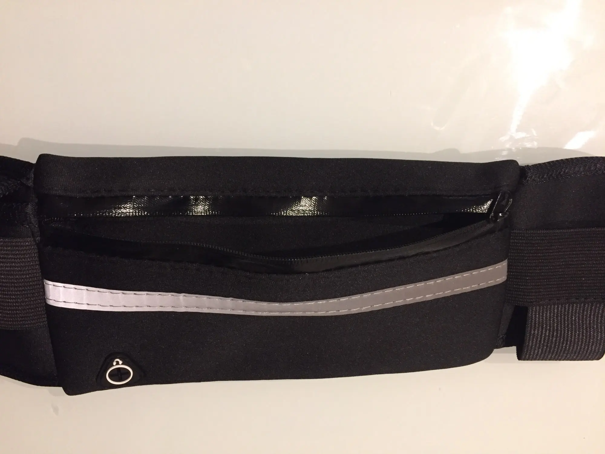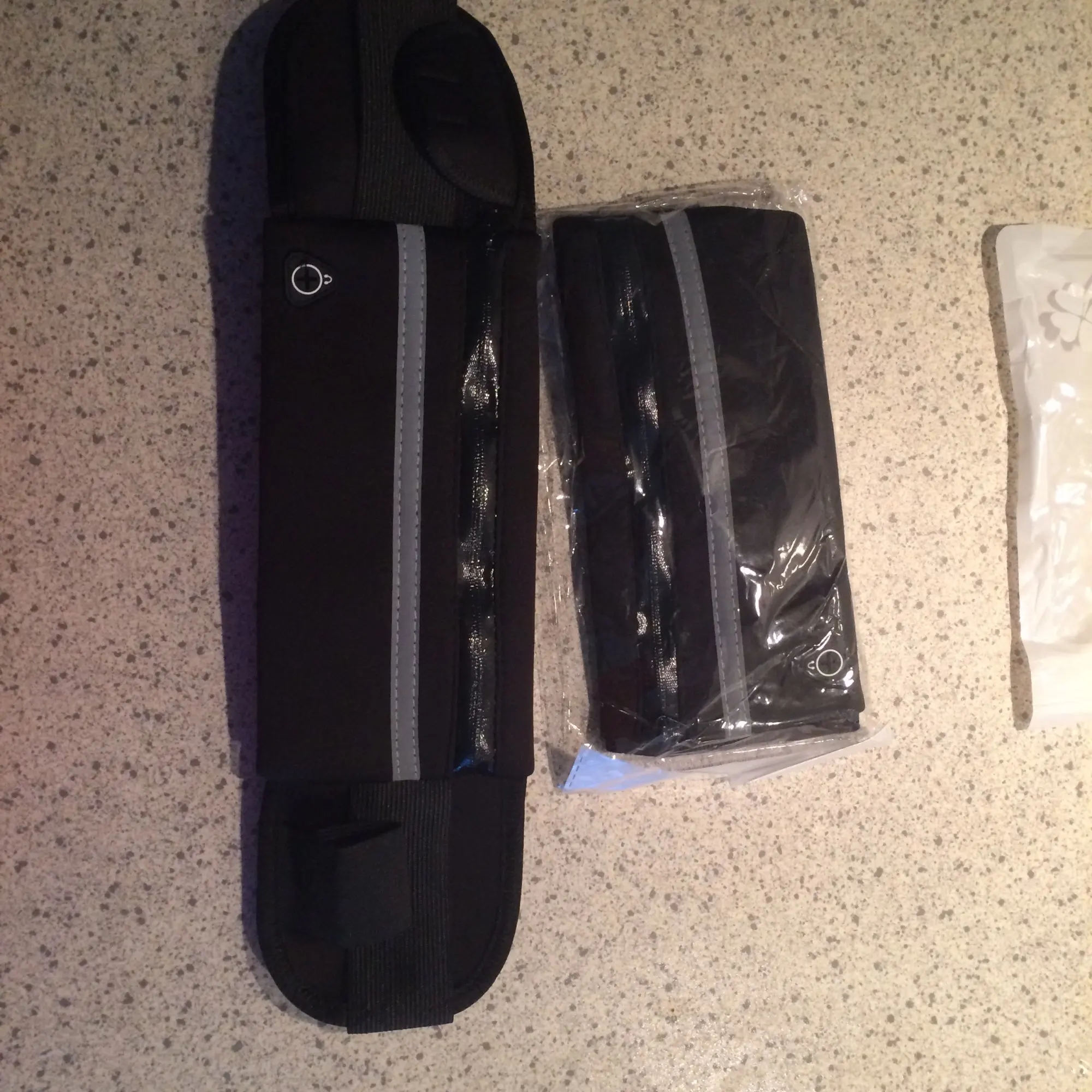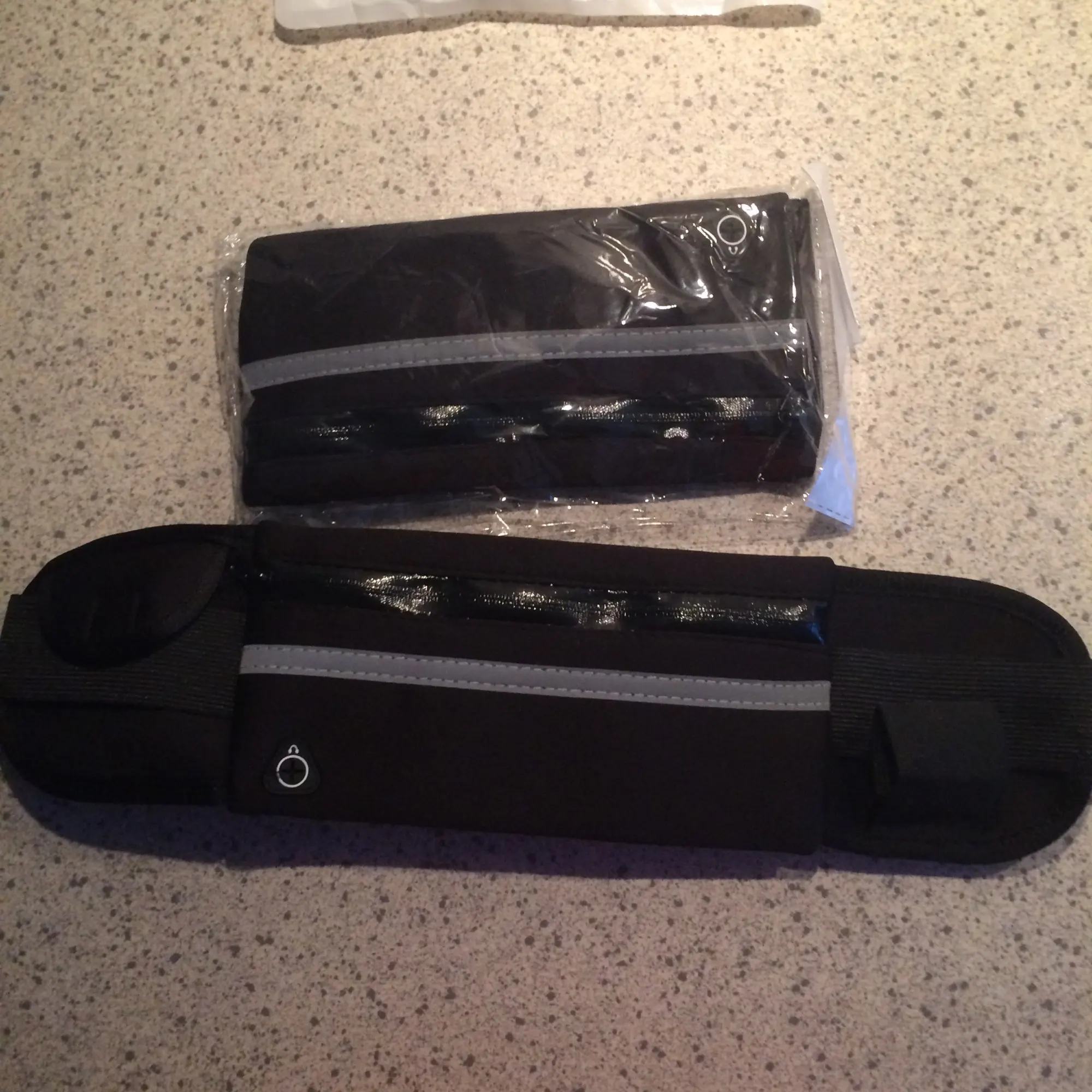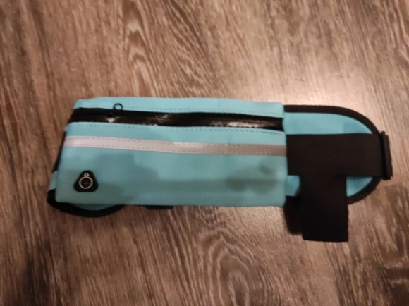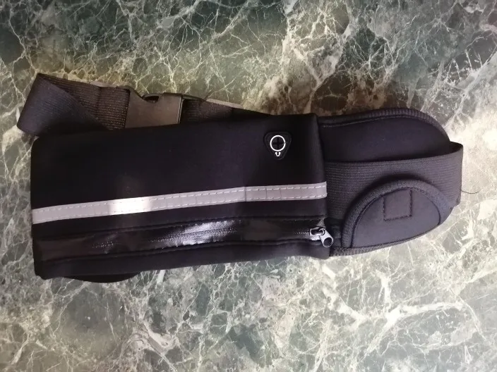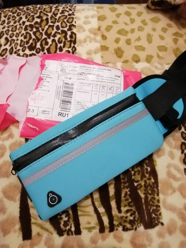 На сумке есть светоотражающая полоска, основной карман на молнии и сбоку маленький карман на липучке (пластиковую карту туда положила, но карман шире), есть отверстие под наушники. Поясная резинка регулируется. Доставка долгая - 2 месяца с момента оплаты (Россия, Ижевск). Упаковано в 2 пакета. С продавцом не общались