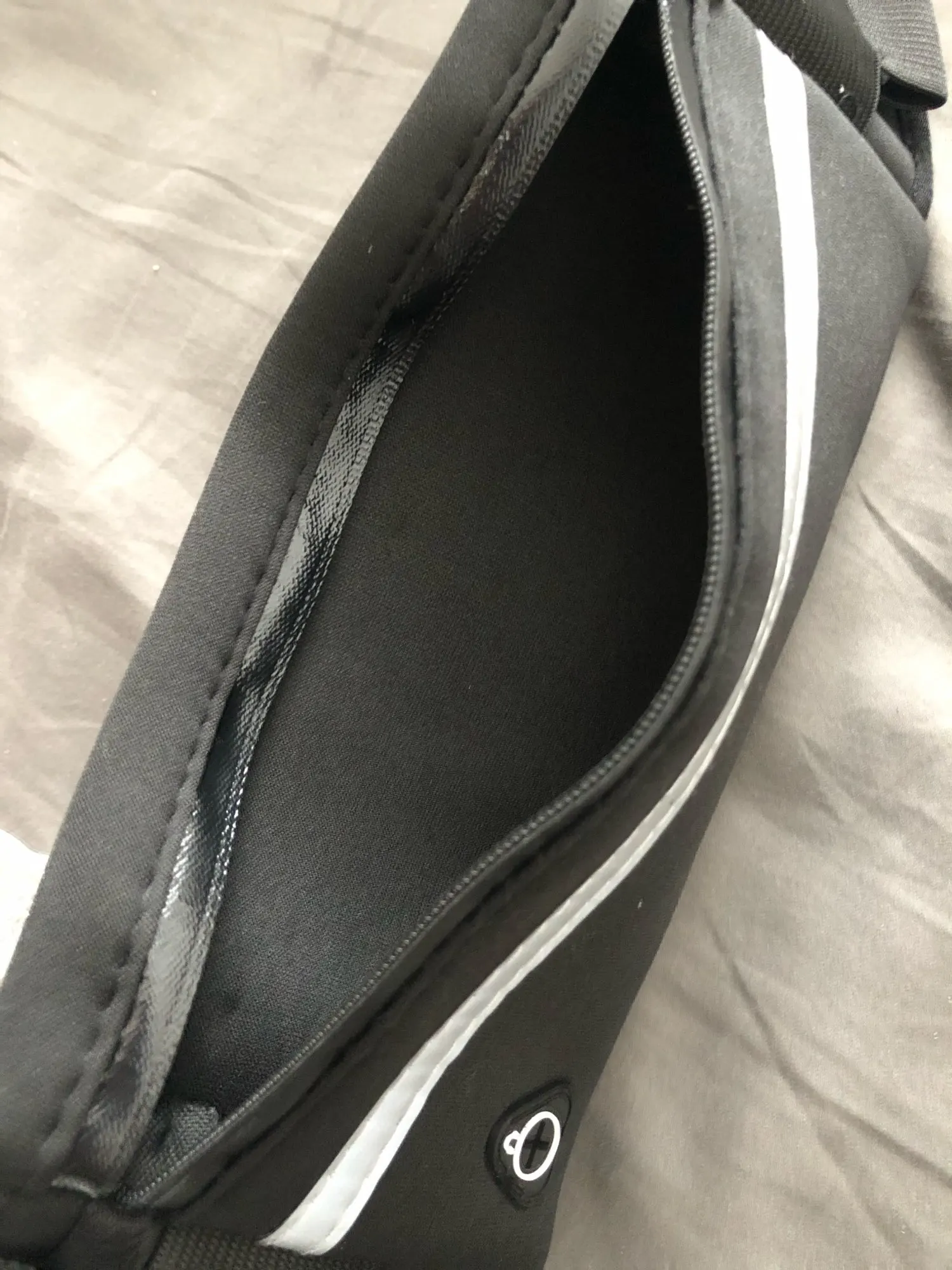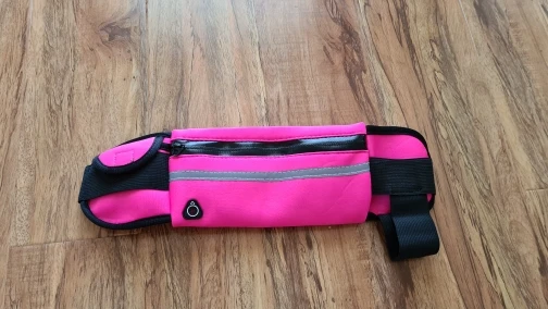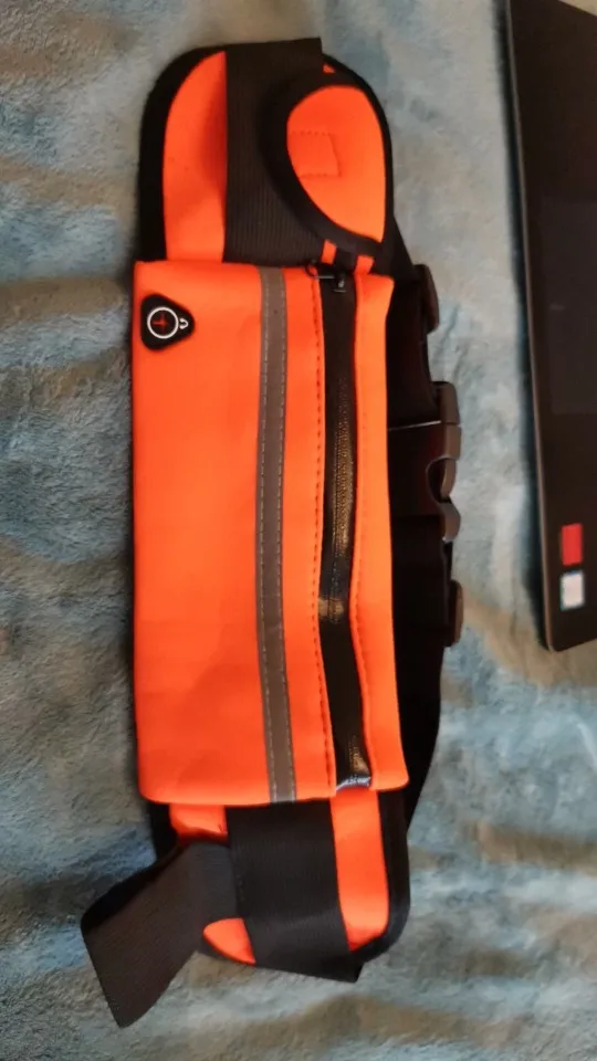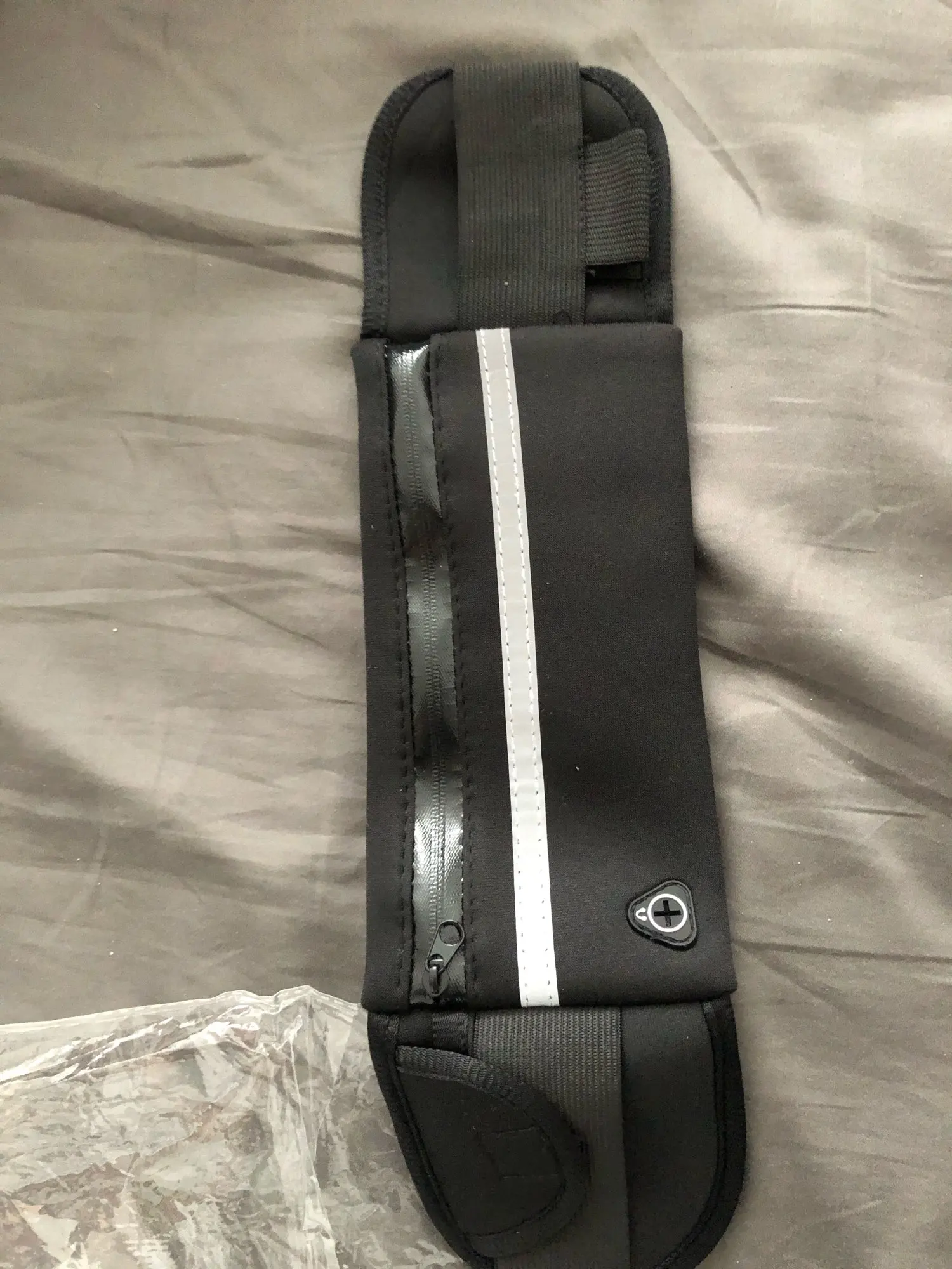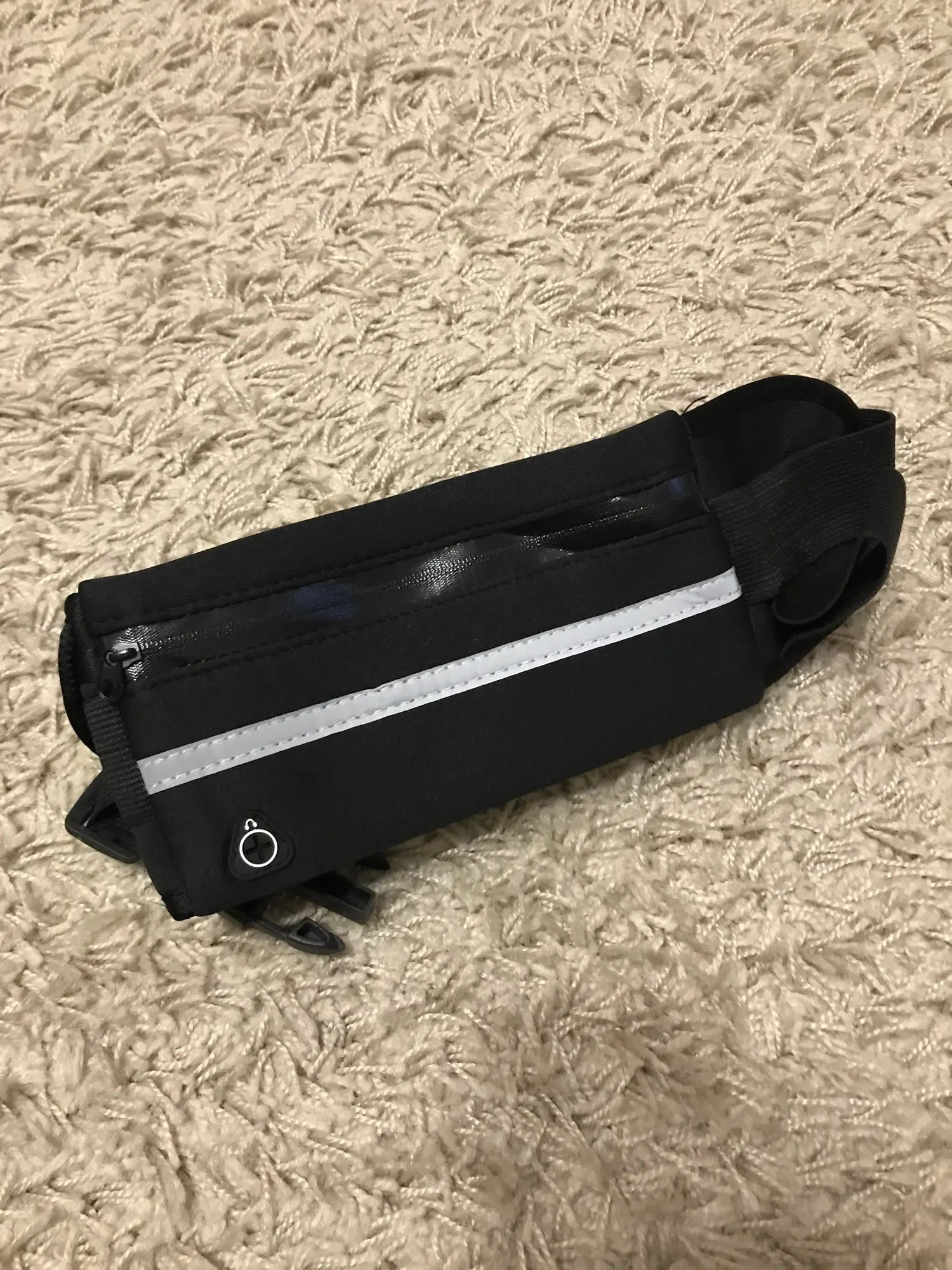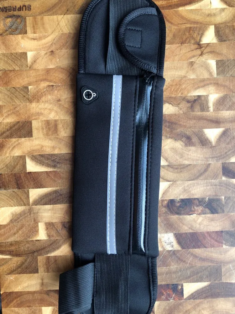 На сумке есть светоотражающая полоска, основной карман на молнии и сбоку маленький карман на липучке (пластиковую карту туда положила, но карман шире), есть отверстие под наушники. Поясная резинка регулируется. Доставка долгая - 2 месяца с момента оплаты (Россия, Ижевск). Упаковано в 2 пакета. С продавцом не общались