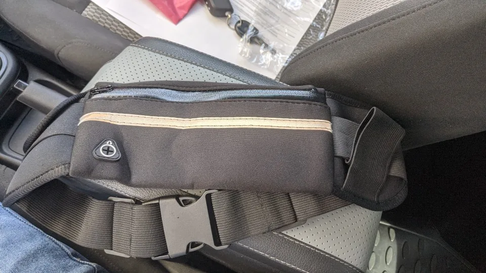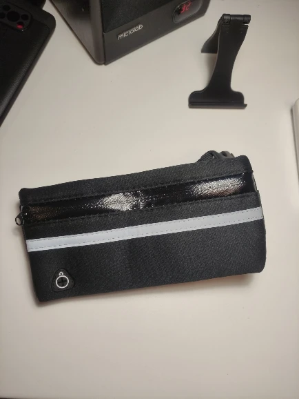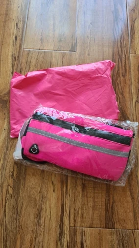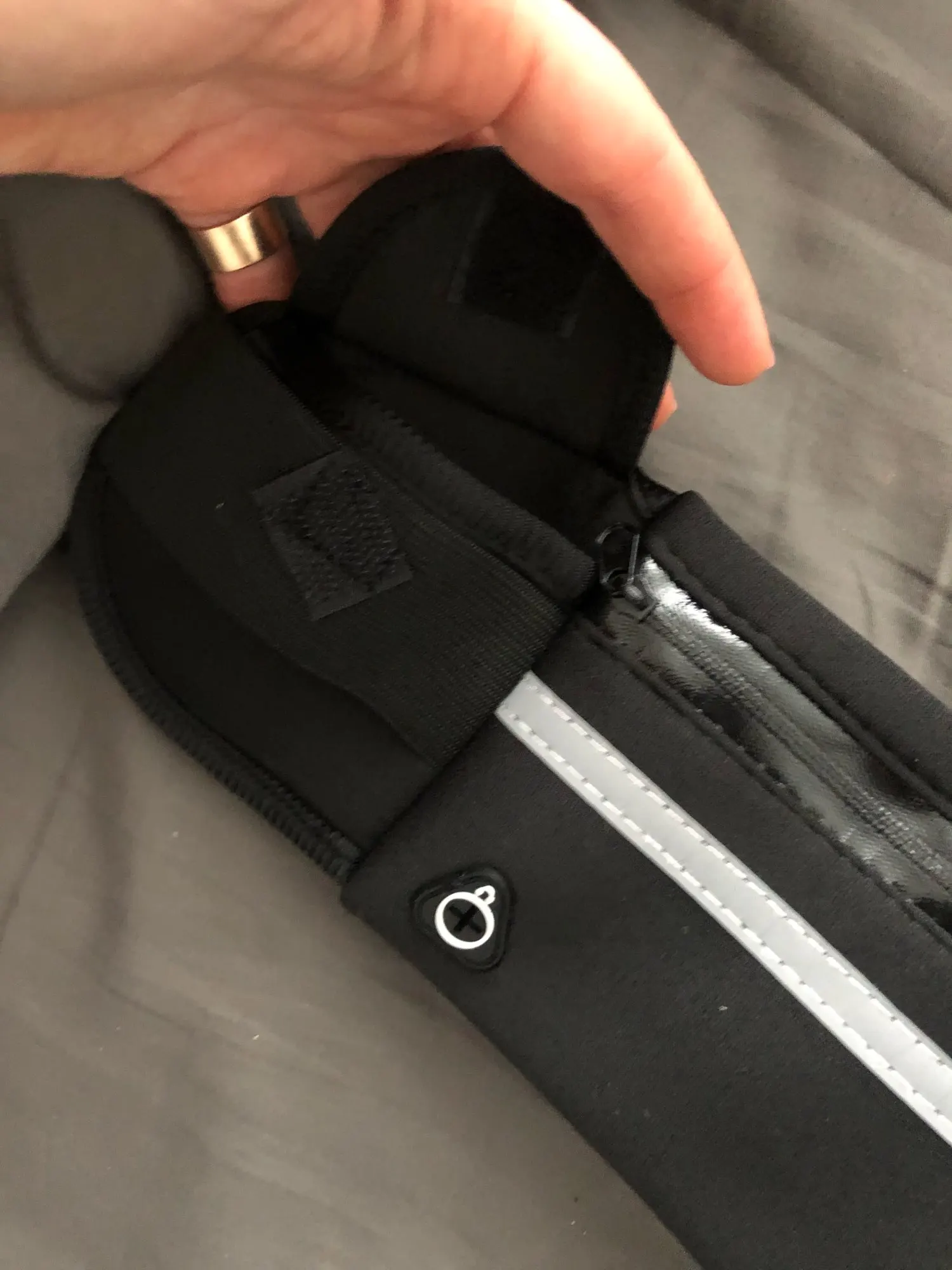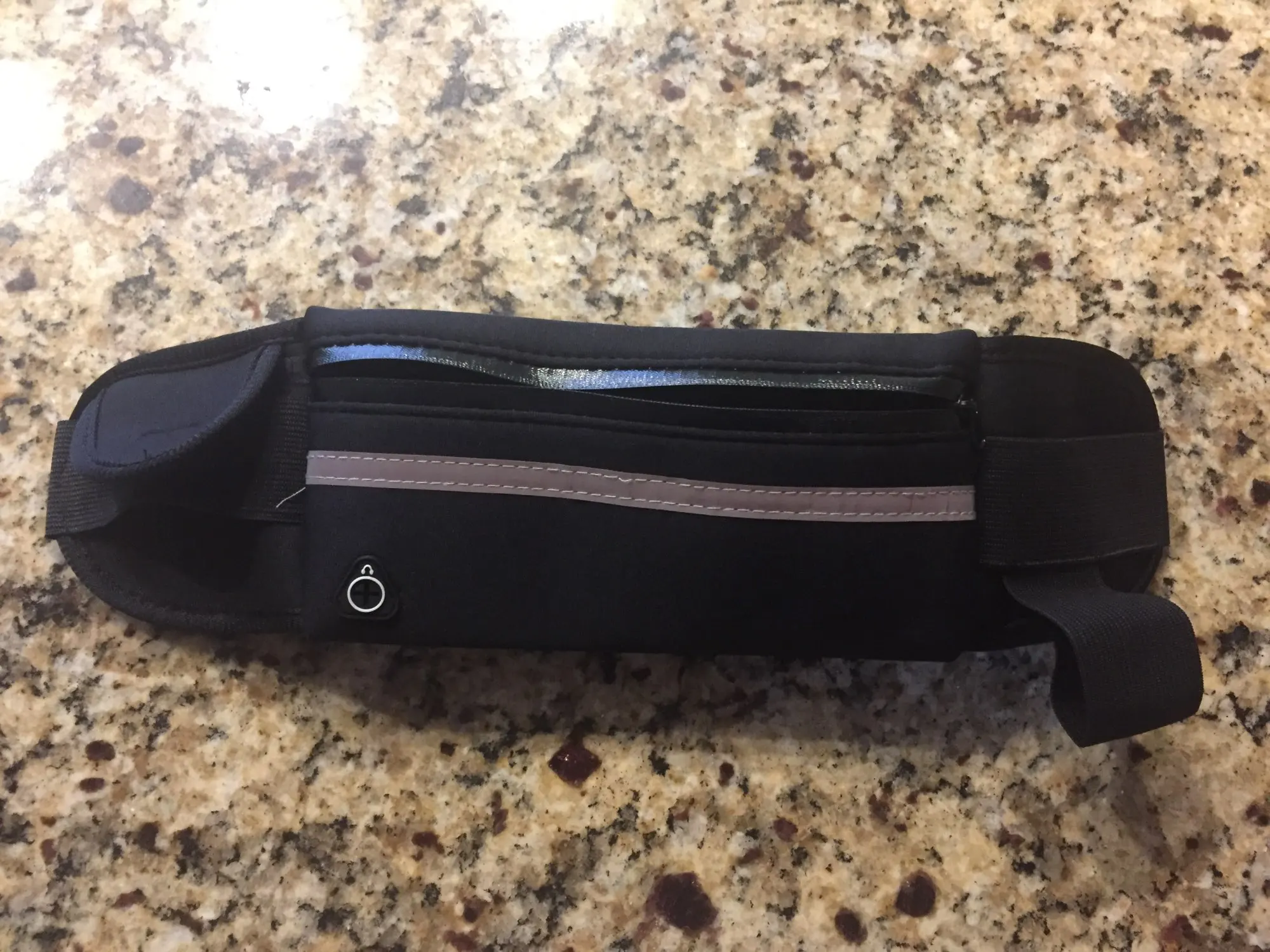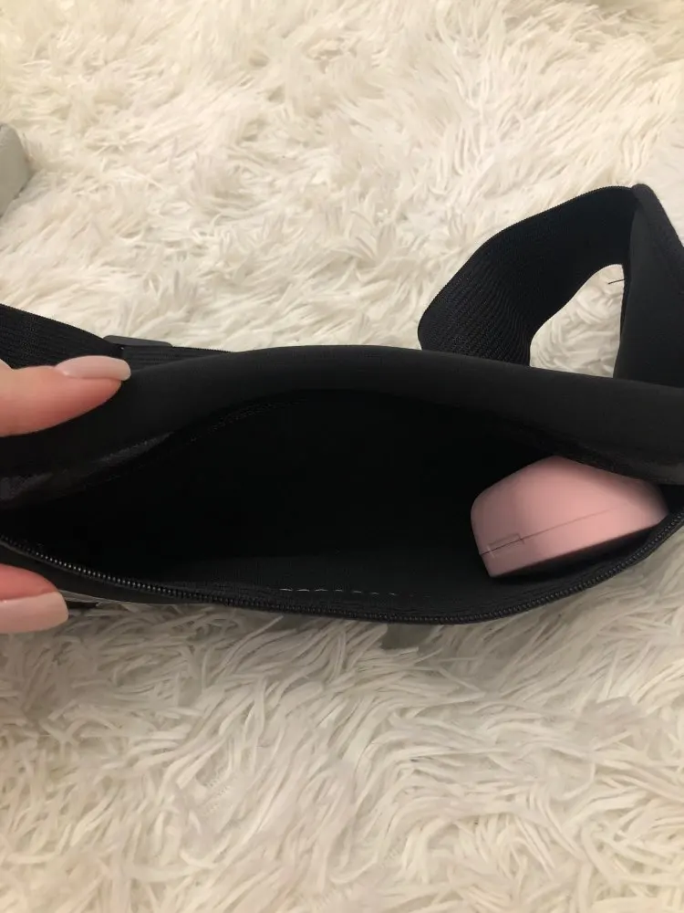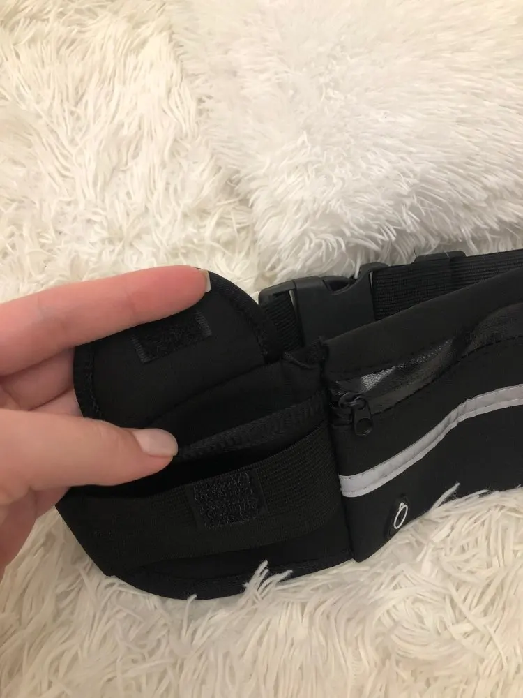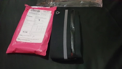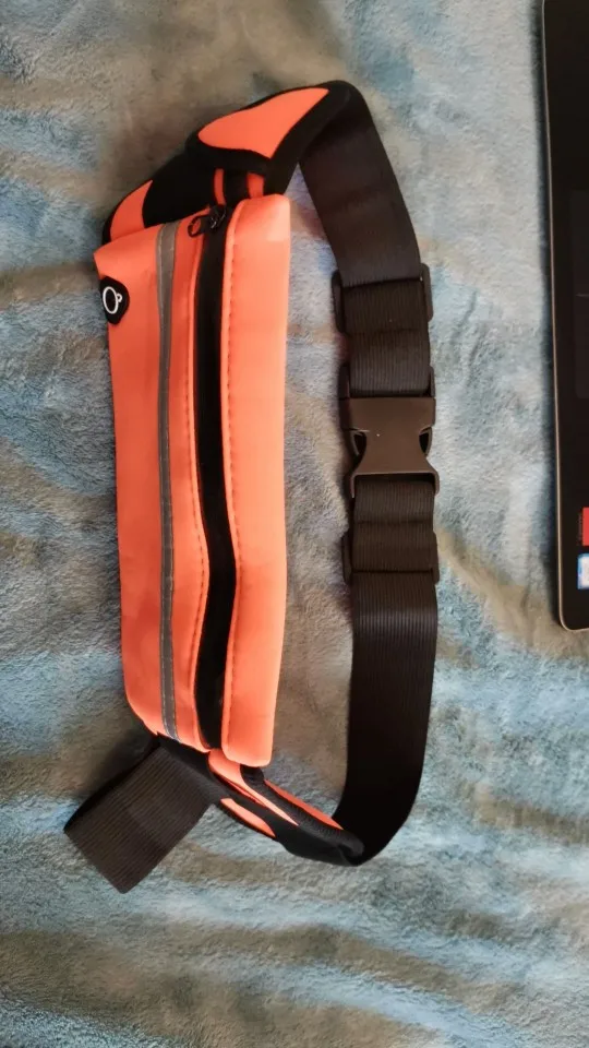 На сумке есть светоотражающая полоска, основной карман на молнии и сбоку маленький карман на липучке (пластиковую карту туда положила, но карман шире), есть отверстие под наушники. Поясная резинка регулируется. Доставка долгая - 2 месяца с момента оплаты (Россия, Ижевск). Упаковано в 2 пакета. С продавцом не общались