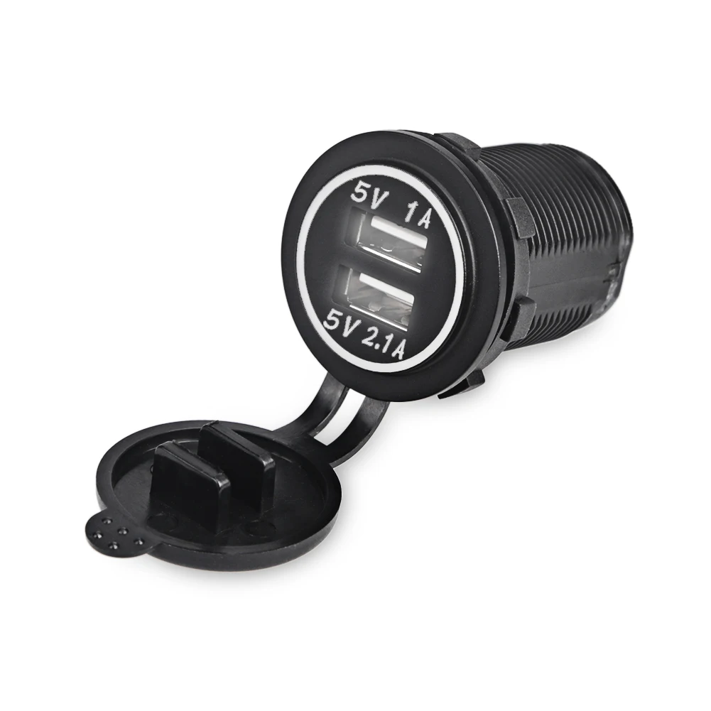 Светодиодный освещение двойной зарядка через USB гнездо, идеально подходит для всех 12V-24V автомобиль, лодка, морской, RV, ATV, SUV, и другие транспортные средства.Достойное и мощное автомобильное зарядное устройство для наружного вождения. Подходит для зарядки мобильных телефонов, GPS, цифровых камер и других аксессуаров USB