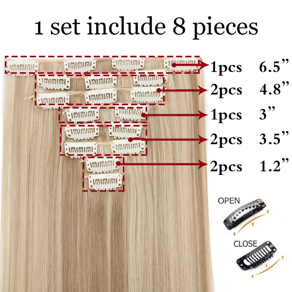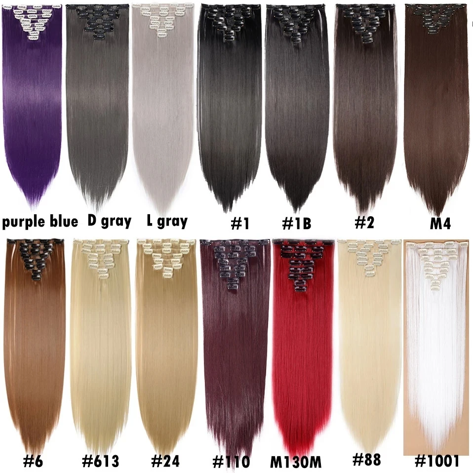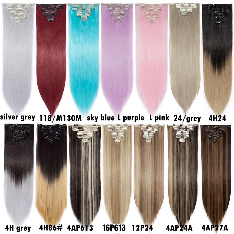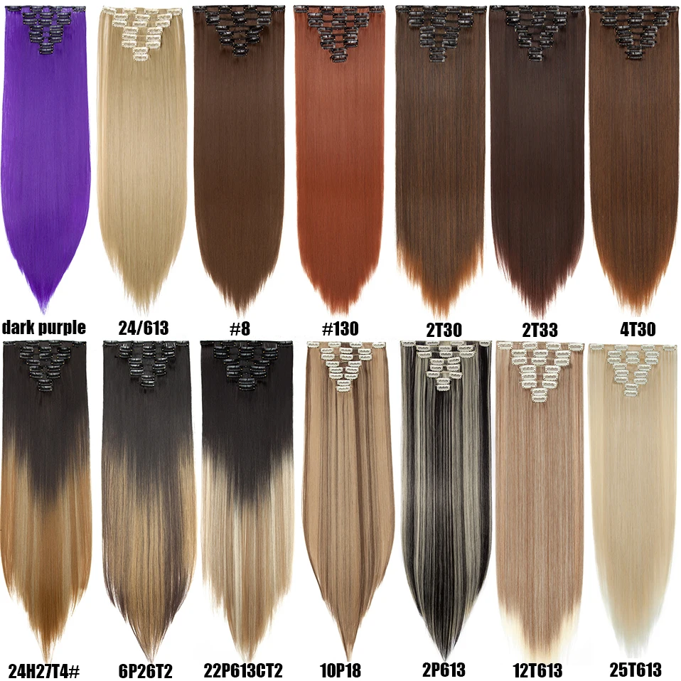 Шиньон HAIRRO, 26 дюймов, 8 шт.компл., 16 зажимов, Длинные прямые синтетические волосы на зажимах, из высокотемпературного волокна, черный, коричневый