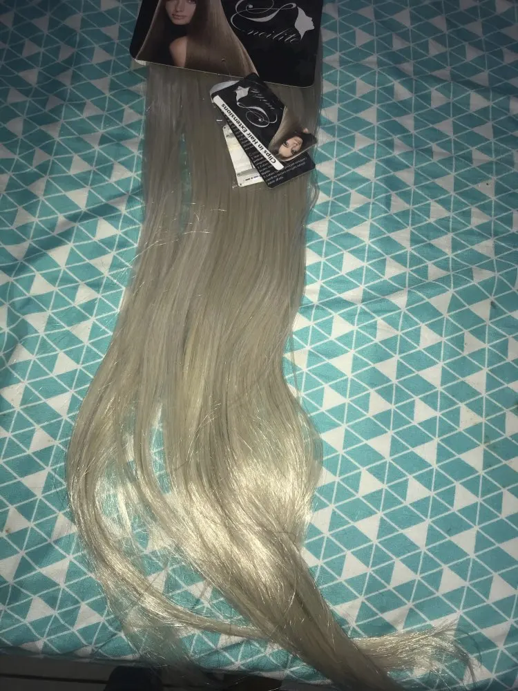 Мне нравится тот цвет, который выглядит так естественно, и клипсы настолько прочные, что они остаются на волосах и не выпадают. Есть различные зажимы размера, которые вы можете использовать, и вам не нужно использовать их все. Длина немного слишком длинная, но идеально сочетается с длиной моего плеча.