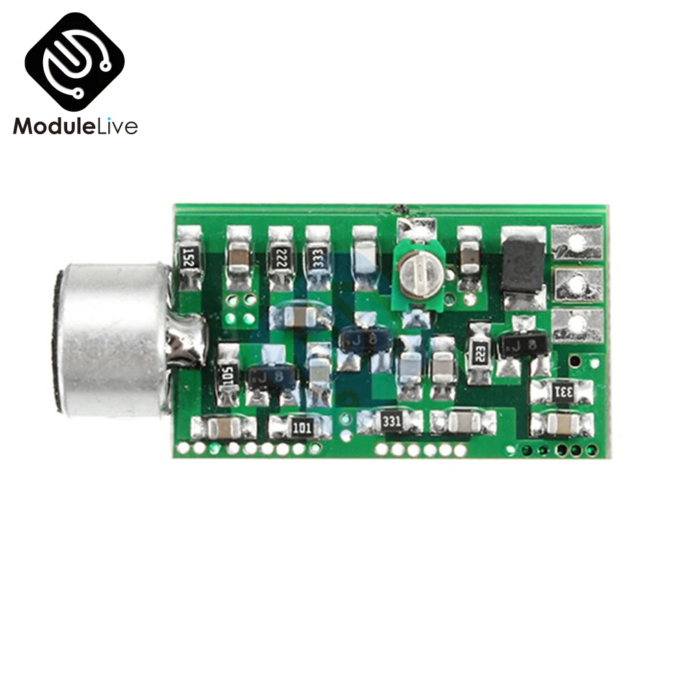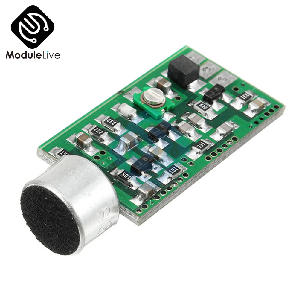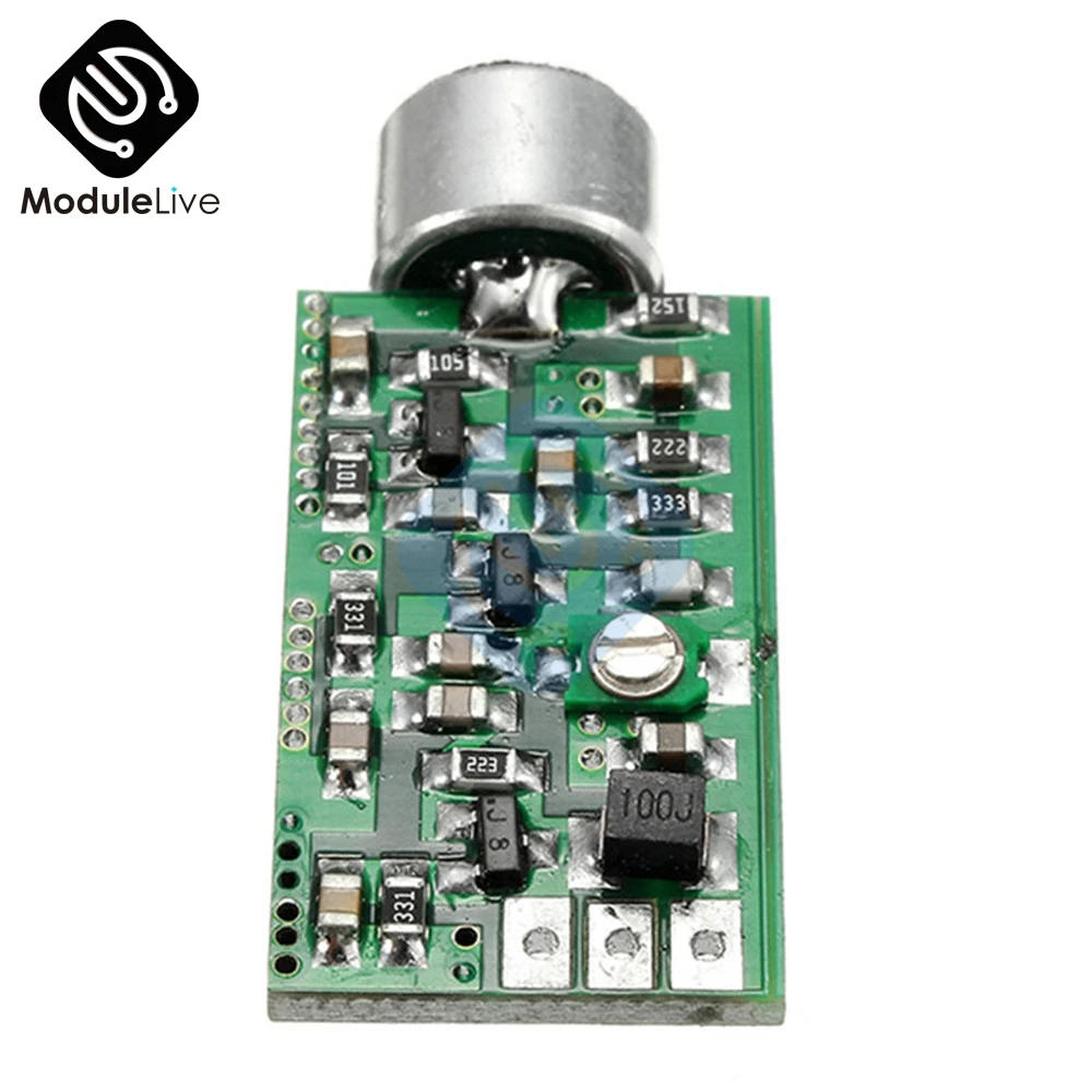 Этот элемент делает звук вокруг микрофона в fm-радио и передает для достижения пикап и беспроводного радио fm-передатчик, Частота запуска регулируется, основная плата зеленые компоненты-это Регулируемый конденсатор, изменение регулируемого конденсатора может изменить частоту запуска, регулируемый диапазон, охватывающий 88-108 МГц GB FM-band. Вы можете использовать радио и телефон (телефон с линией гарнитуры делает Чувствительность антенны плохой, не рекомендуется как приемник) как приемник! Он широко используется для передачи голоса, аудио микрофона, наблюдения за сном для пожилых людей и детей и т. д. необходимо подобрать звук случая!