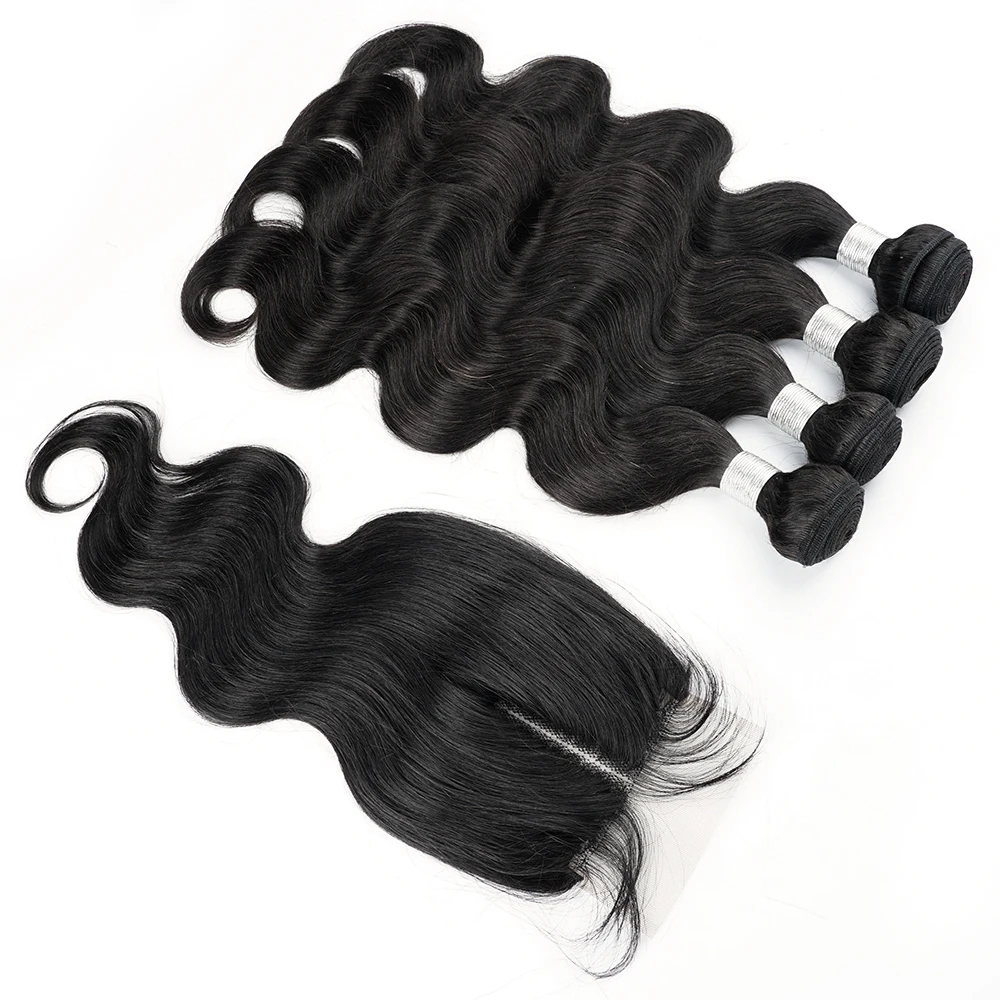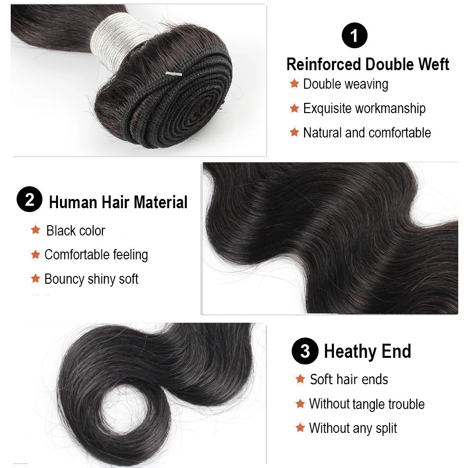 23 пряди ков волнистых волос с кружевной застежкой, качественные человеческие волосы Remy для наращивания, натуральный черный цвет, 10-24 дюйма, могульные волосы