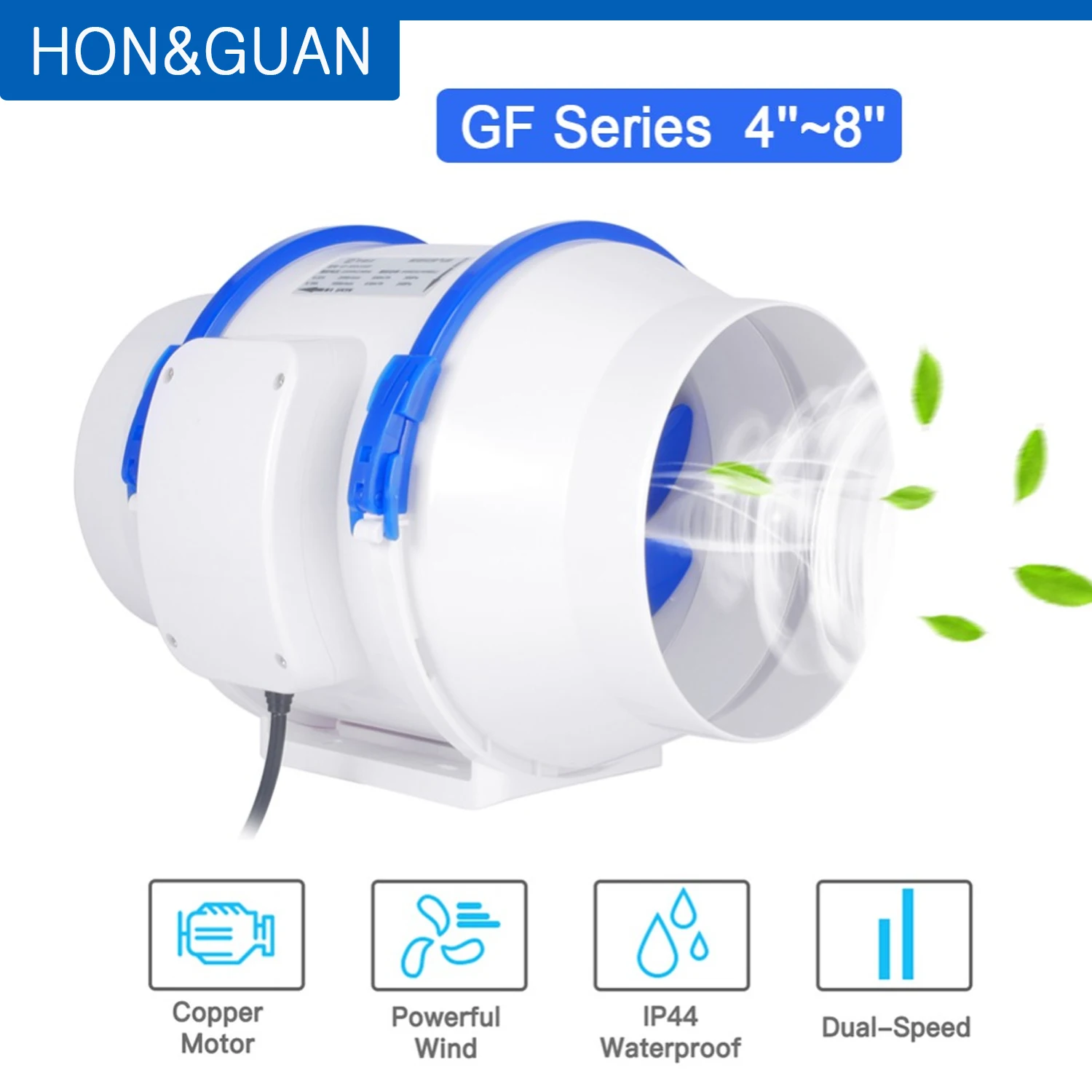 Бесшумный встроенный канальный вентилятор Hon Guan, 4, 5, 6, 8 дюймов, 220 В, 110 В, вытяжной вентилятор для дома, ванной, кухни