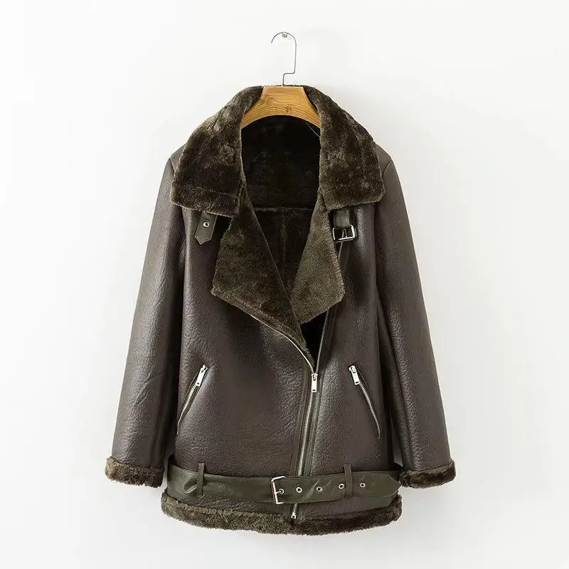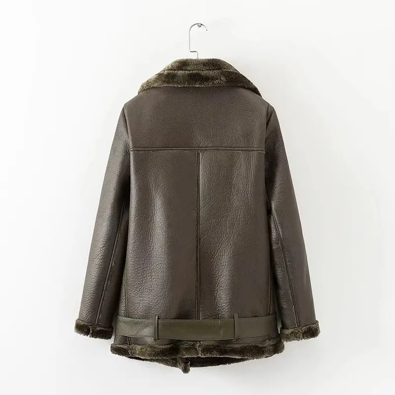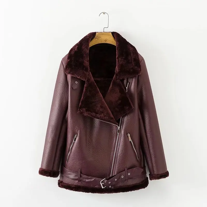 Ailegogo зимняя женская куртка из искусственной овечьей кожи, теплая толстая верхняя одежда, куртка из искусственной кожи, овечья шерсть, меховой воротник, замшевая куртка, пальто