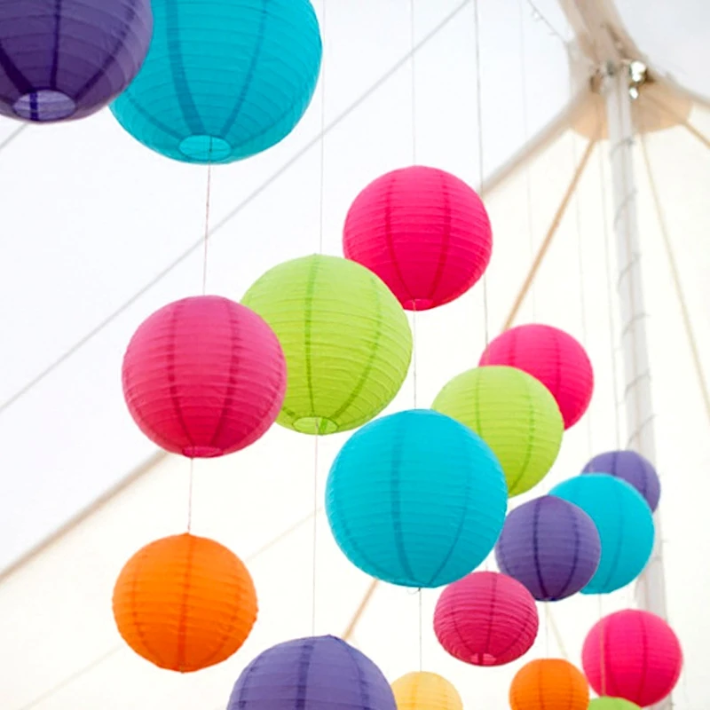 Синий фиолетовый розовый зеленый желтый белый круглый китайский бумажный фонарик Рождество Хэллоуин вечерние декоративные подвесные бумажные шары