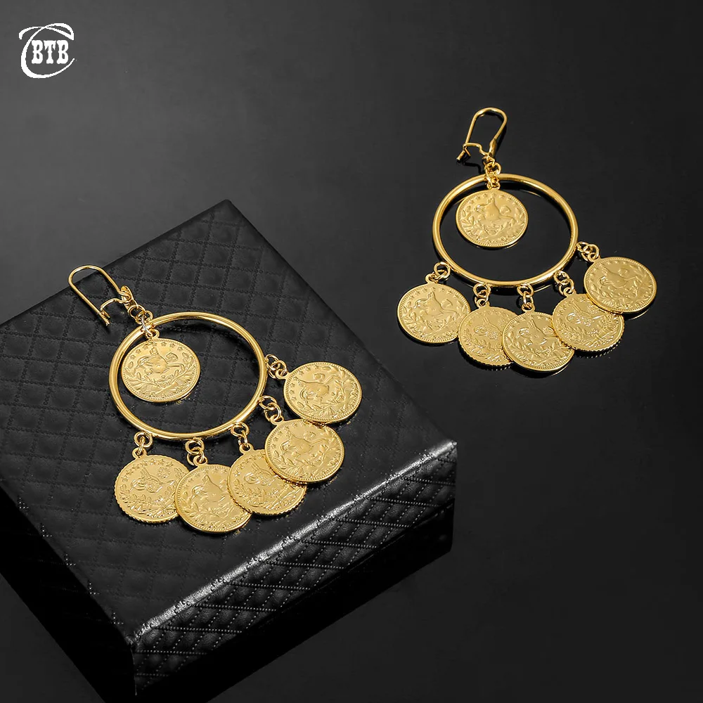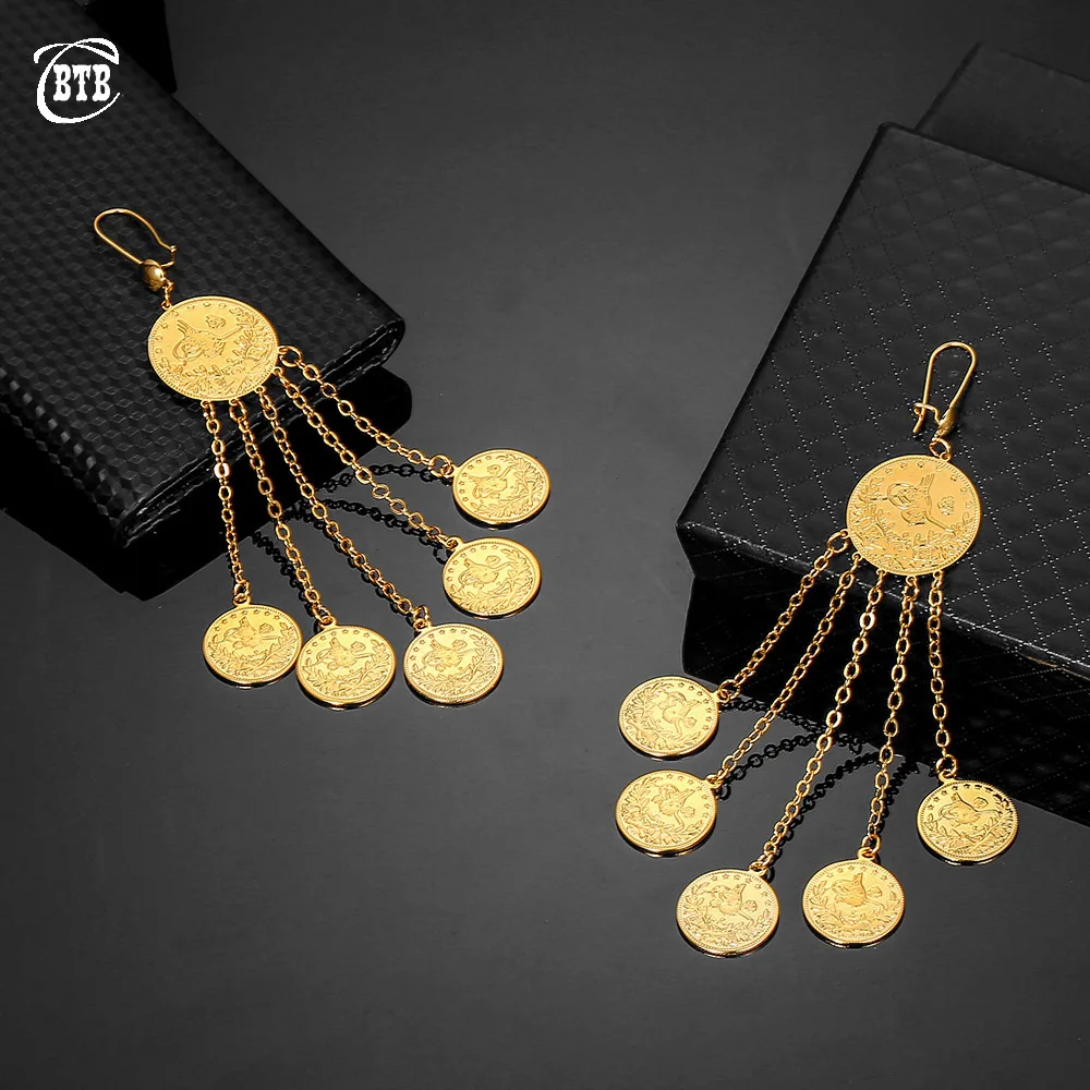 Золотые серьги в виде монет, мусульманские исламские ювелирные изделия для женщин, подарки для девушек, древняя монета, турецкие ювелирные изделия в арабском африканском стиле