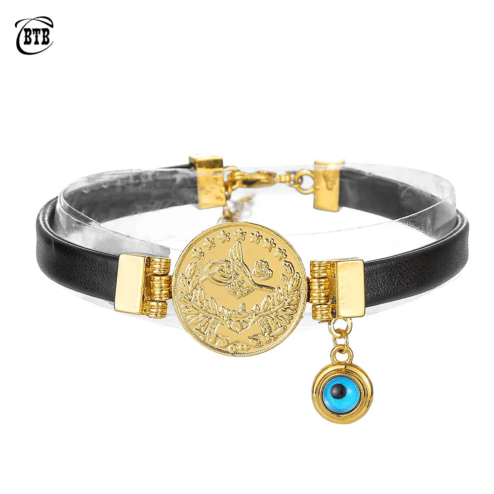 Турецкий Монетный браслет Мухамед ислам Бог манжета дьявол глаз браслет Ближний Восток арабский ювелирный кожаный браслет