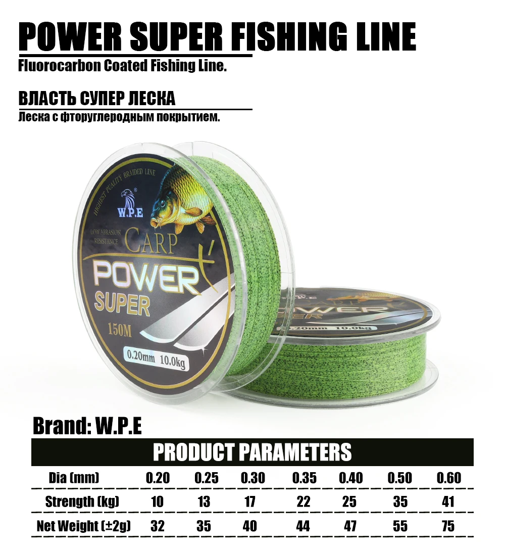 W.P.E Фирменная супермощная рыболовная леска для ловли карпа 0,2 мм-0,60 мм, леска с фторуглеродным покрытием 10-41 кг, двухцветная быстротонущая леска