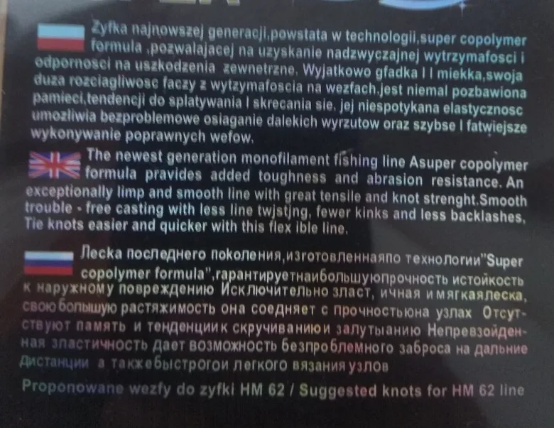 Леска обсолютно новая, таких ещё не видел, как будет себя вести не знаю очень прочная