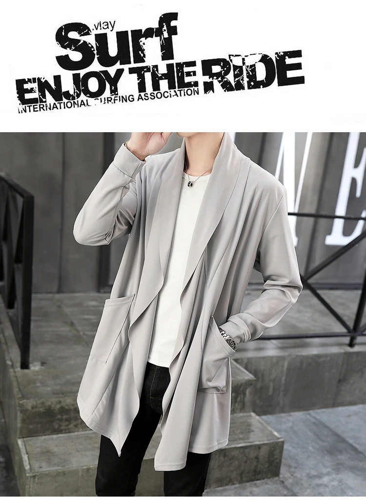 Мужской кардиган с драпировкой на воротнике, черный или серый длинный Приталенный кардиган с длинным рукавом, повседневные жакеты, осень 2019