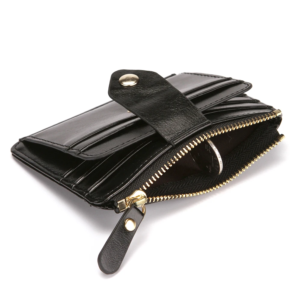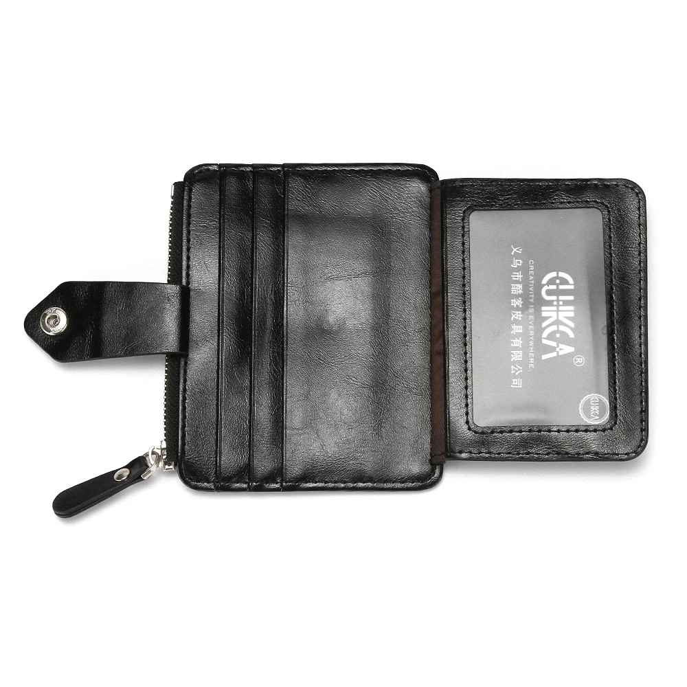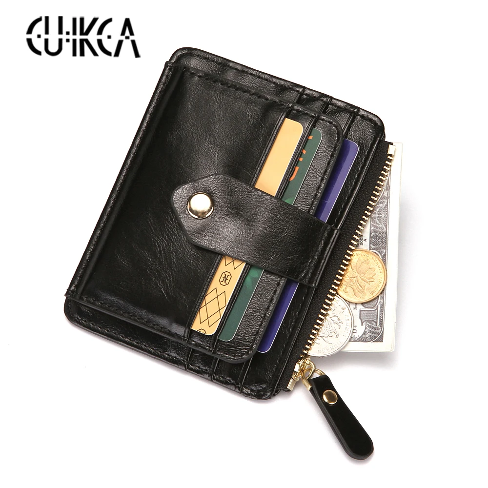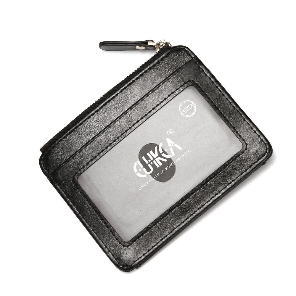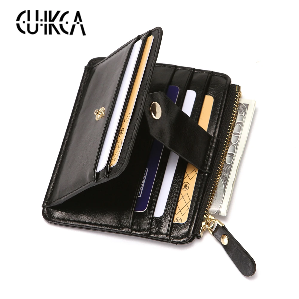 Кожаный тонкий кошелек CUIKCA, унисекс, для мужчин и женщин, деловой кошелек для кредитных карт и удостоверения личности, на молнии, с застежкой