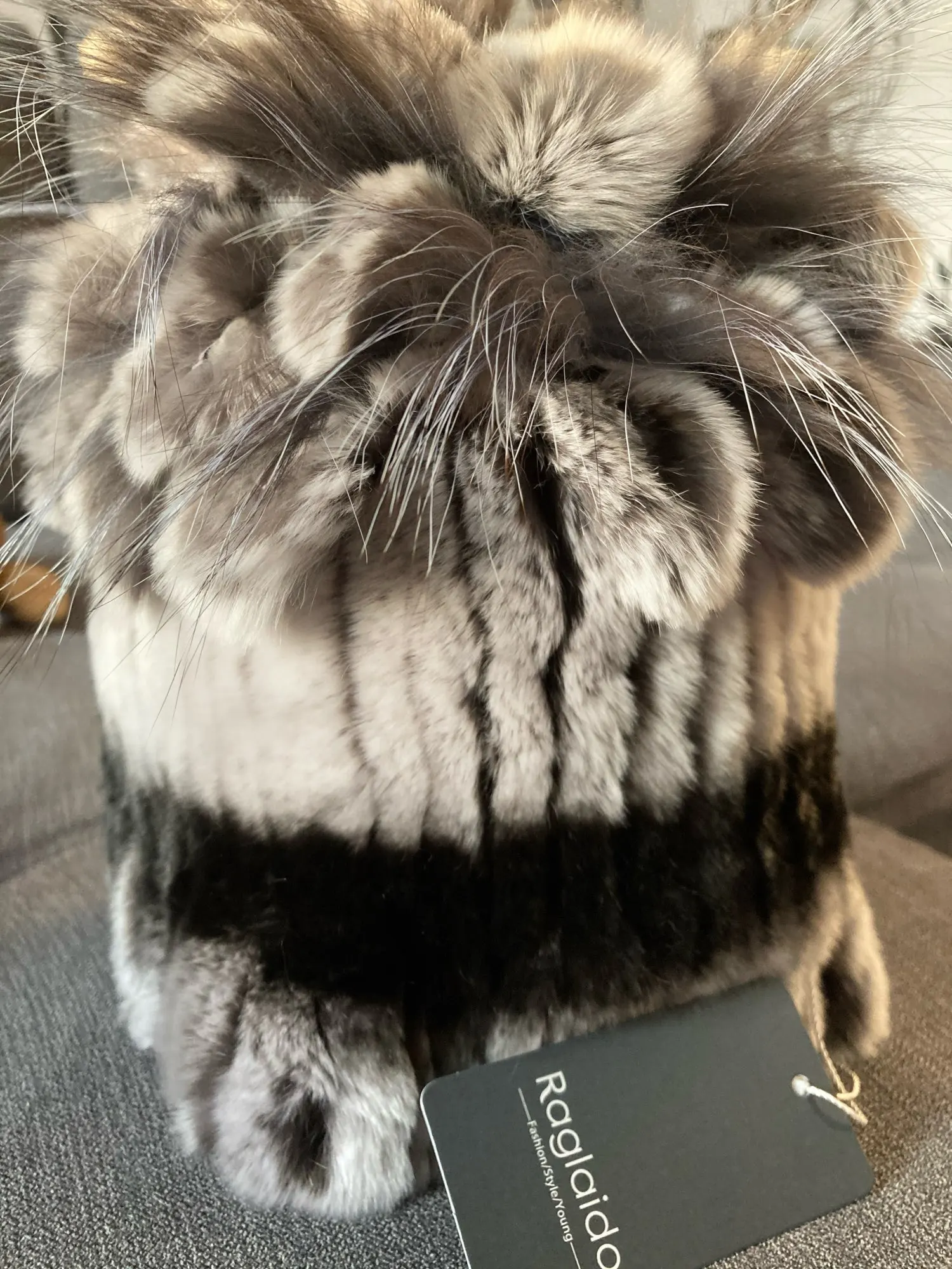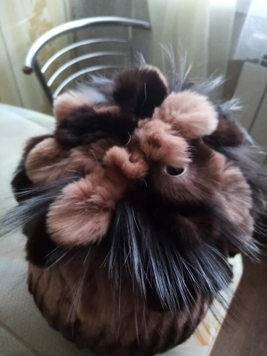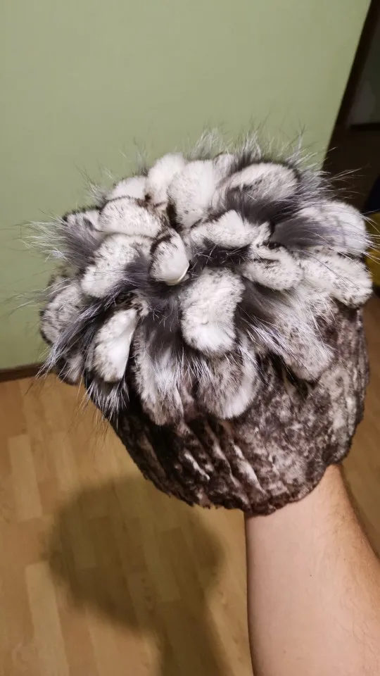 обалденная шапка. доставка 1 месяц. натуральный мех кролика. качественно сшито. надо ещё заказывать. вживую лучше чем на фото