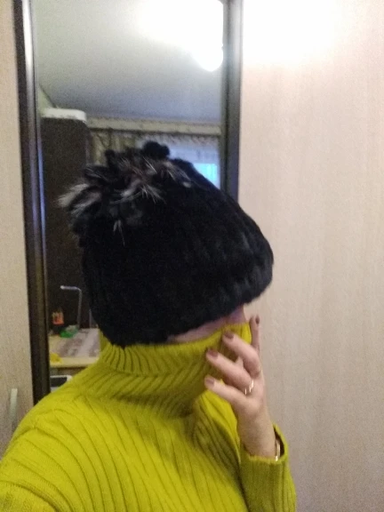 Шапочка просто супер.Очень аккуратно сделана, вязка внутри плотная.В подарок продавец положил резиночку. Заказ шел 3 недели,я ещё её не ждала даже. Покупкой очень довольна,всем подругам буду рекомендовать.Продавцу огромное спасибо.Твердая пятерка.