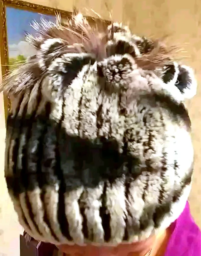Расцветка соответствует моему заказу. Ворс меха длинный, полоски нарезаны аккуратно. претензий к внешнему виду нет. Жене понравилась, она такие уже видела. Но на мой взгляд, шапка рассчитана на небольшой размер. При сильном растягивании заметен просвет между полосками. Если мех в дальнейшем распушится по сторонам, то все будет отлично.