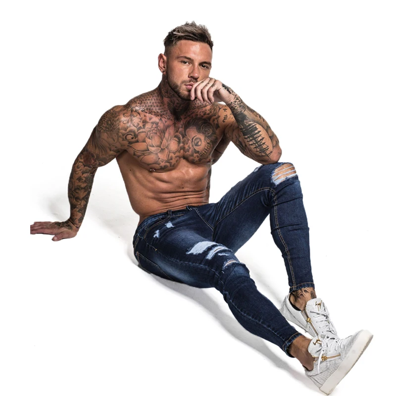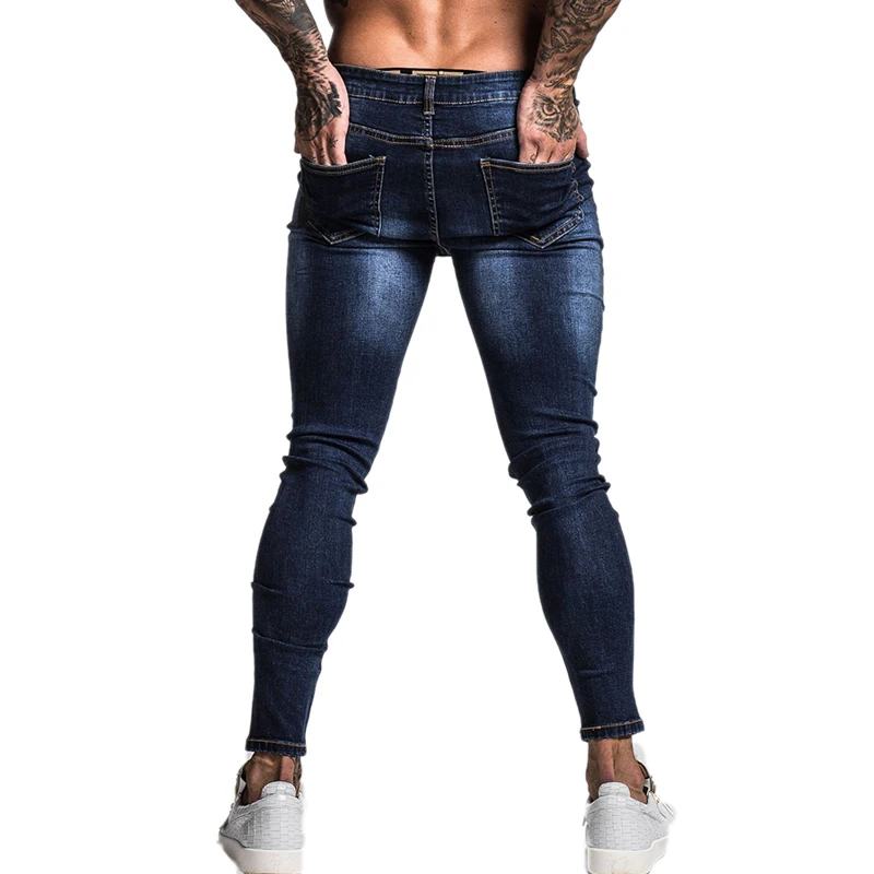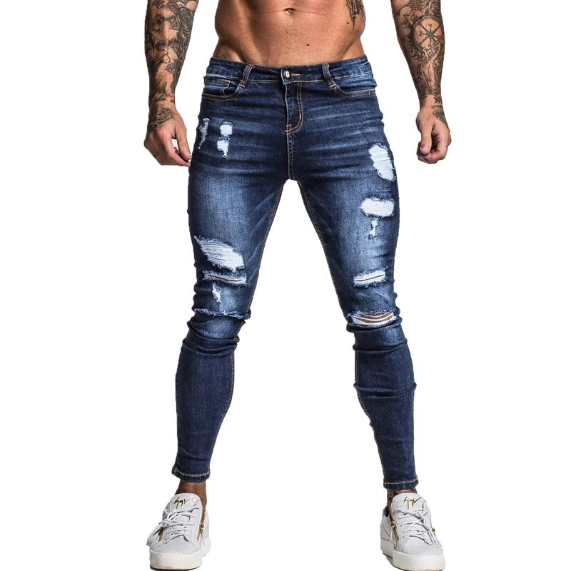 Gingtto мужские обтягивающие Стрейчевые отремонтированные джинсы темно-синего цвета в стиле хип-хоп, супероблегающие хлопковые удобные джинсы большого размера zm34
