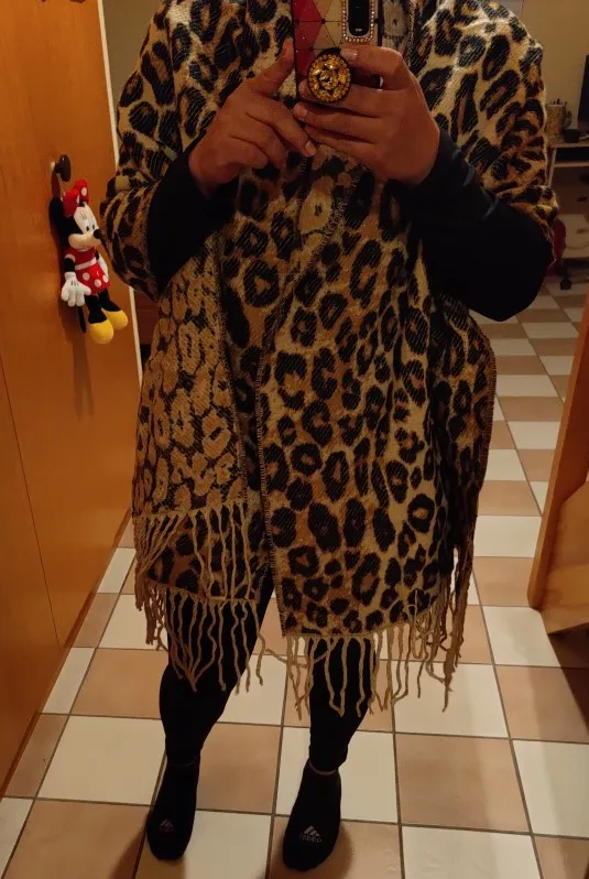 ОЧЕНЬ тёплое пончо! Выглядит красиво и все спрашивают где я его купила. Анималистичные принты в моде, поэтому данный товар актуален и прекрасен. Берите!