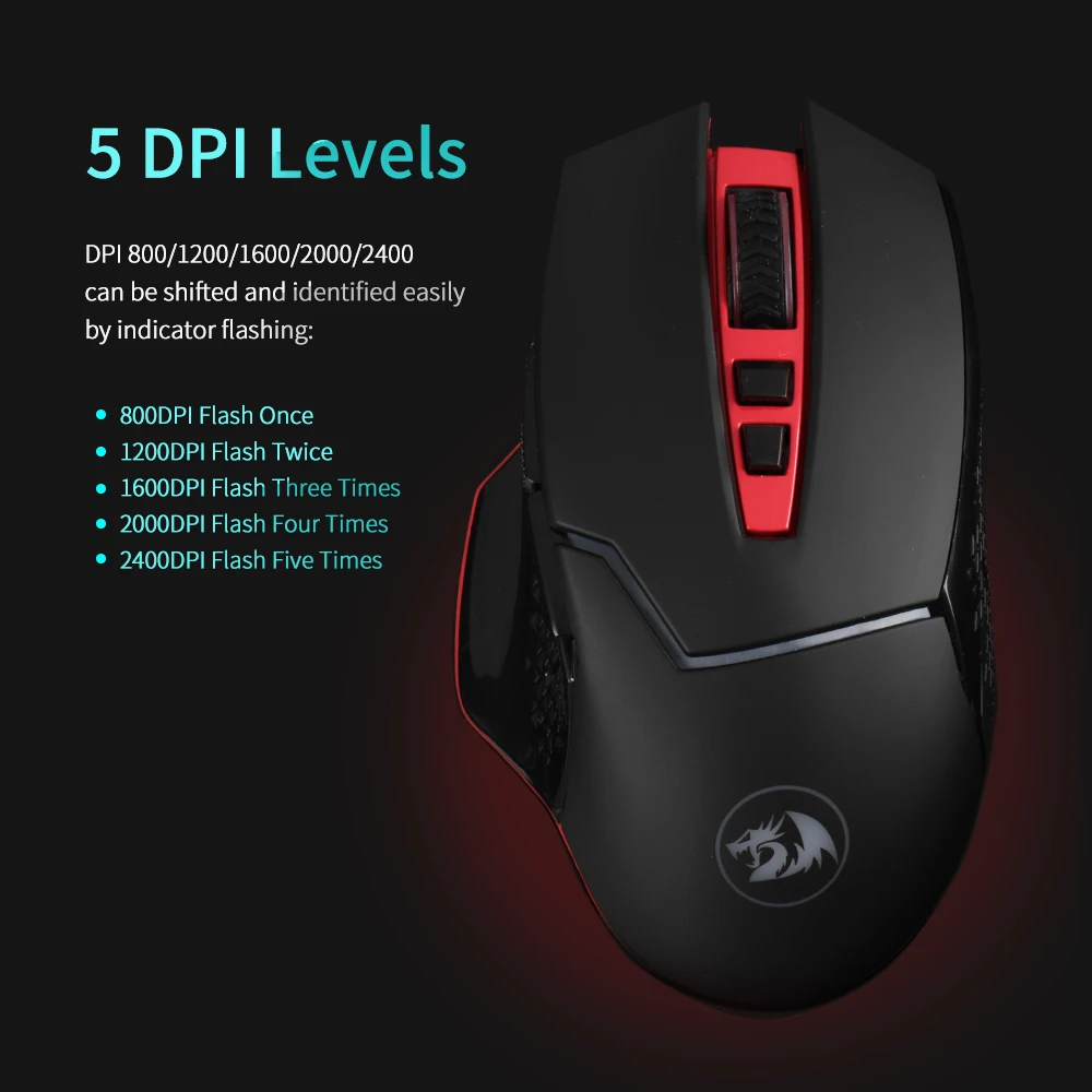 5 регулируемый уровень DPI(800, 1200, 1600, 2000, 2400)Чтобы изменить скорость мыши свободно.