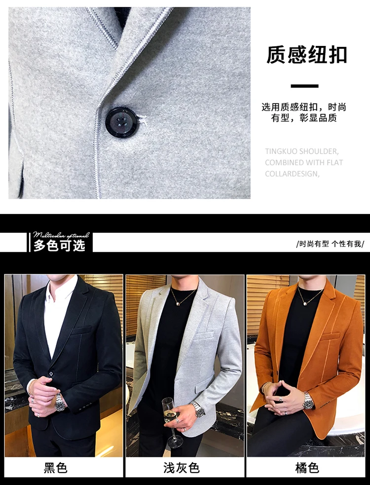 Мужской шерстяной Блейзер, черный, серый, оранжевый, однотонный, Деловой, Повседневный, винтажный, 3 цвета, 5xl