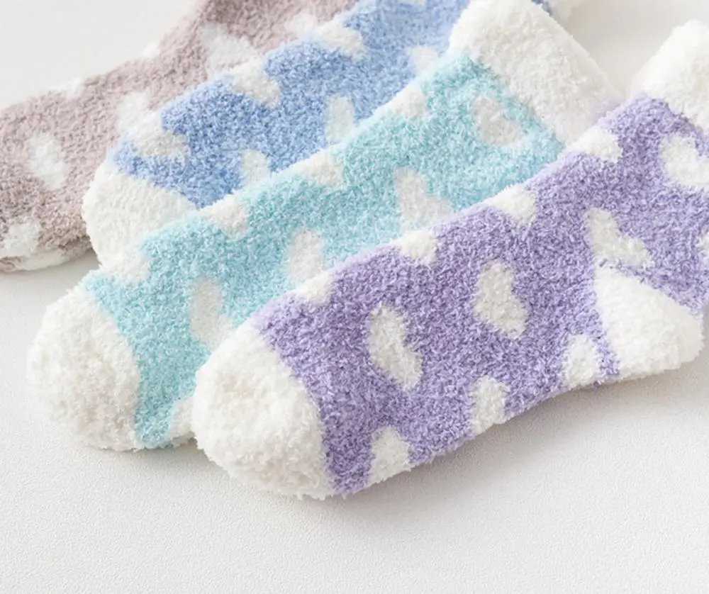 5 партЛот зимние теплые мягкие толстые носки для женщин оптовая продажа модные милые бархатные повседневные короткие носки кораллового цвета с принтом сердечек