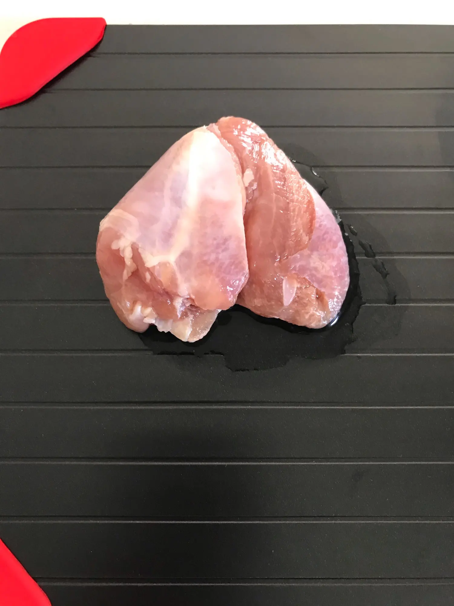 Отличное приспособление. Действительно быстрее размораживает продукты. Хотя, за ножки можно было брать и поменьше. Спасибо продавцу.
