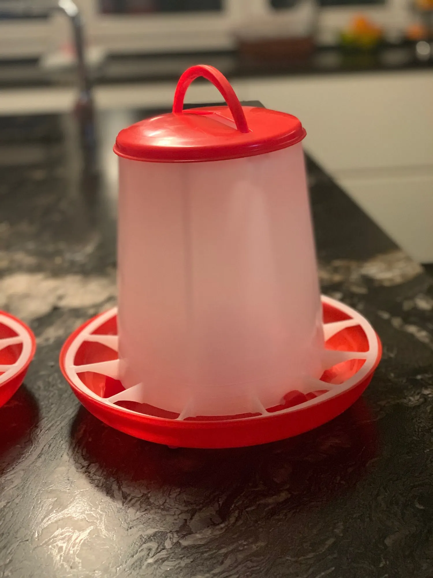 Довольно прочный. У меня есть 25 цыплят, поэтому мне нужно 2. Не полезно для воды, вода просто выливается, но она отлично подходит для курицы.