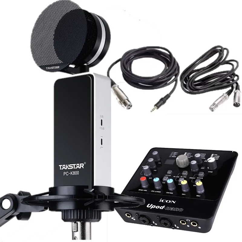 Высококачественный Оригинальный Микрофон Takstar PC-K800 со значком upod nano звуковая карта с ISK аудио кабелями для профессиональной студийной записи, вещания, записи ПК, сцены