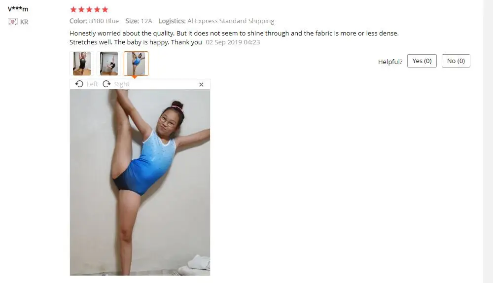 The item we ordered wasn't in stock, so we received the red version of this instead (after communication from the seller). The leotard is comfortable, the little one likes it s lot