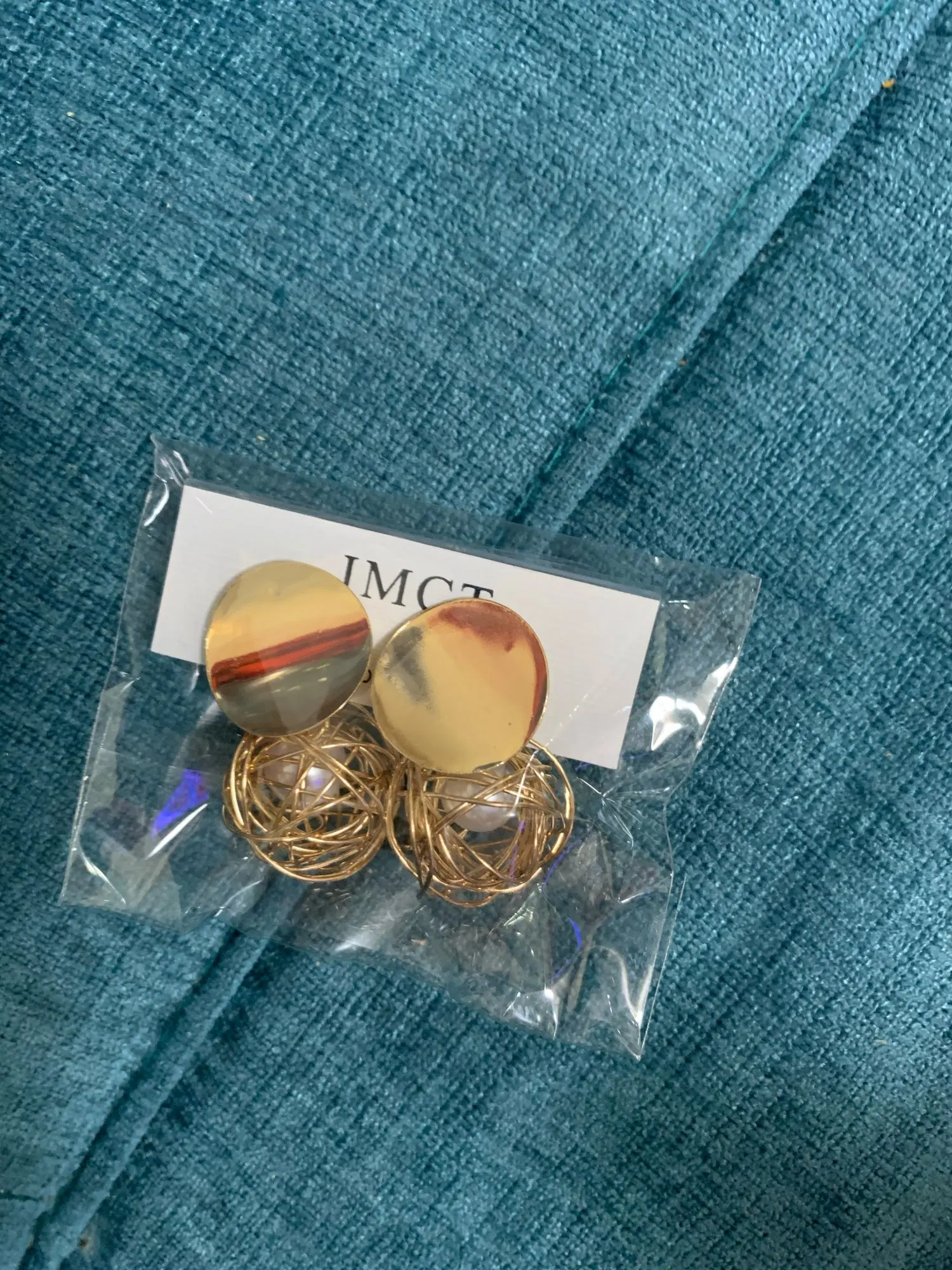 Серьги-гвоздики женские золотистые, круглые, геометрические