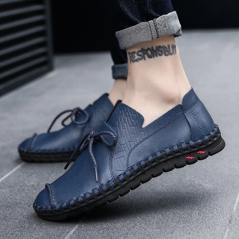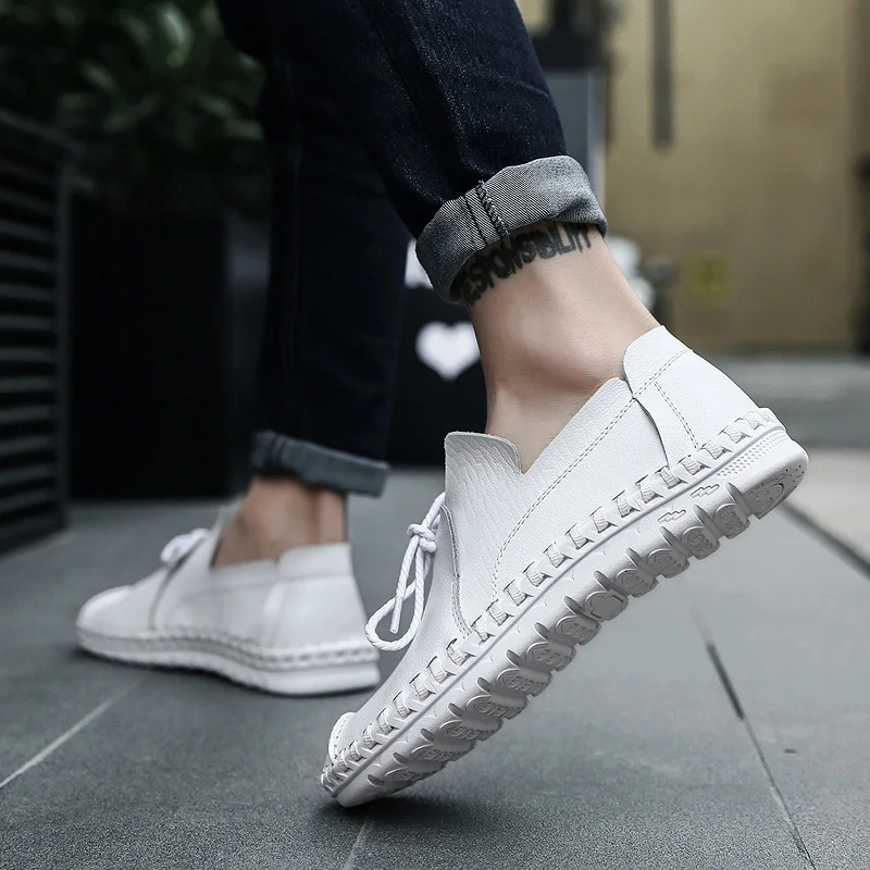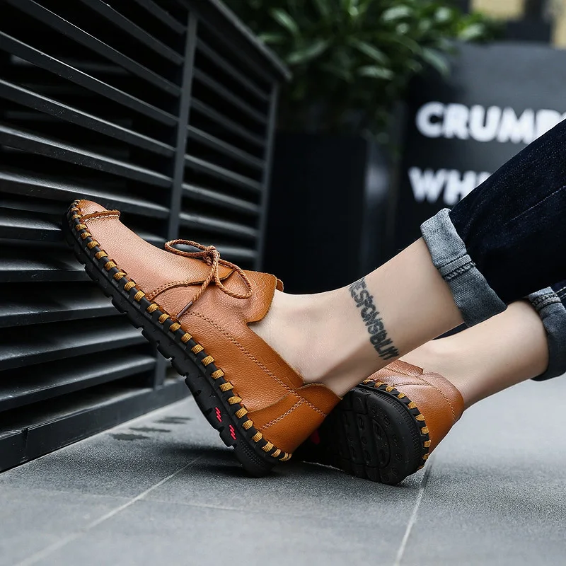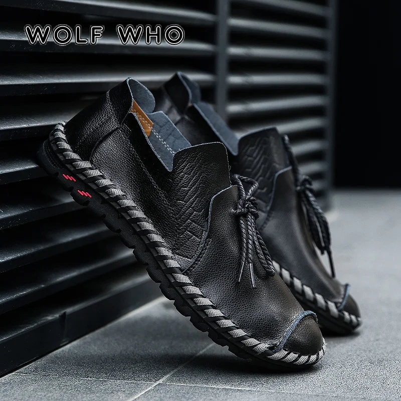 Мужские дышащие туфли WOLF WHO, повседневные лоферы из натуральной кожи для взрослых, слипоны, высококачественные кроссовки, мужские большие размеры размера плюс 38-50 W-015