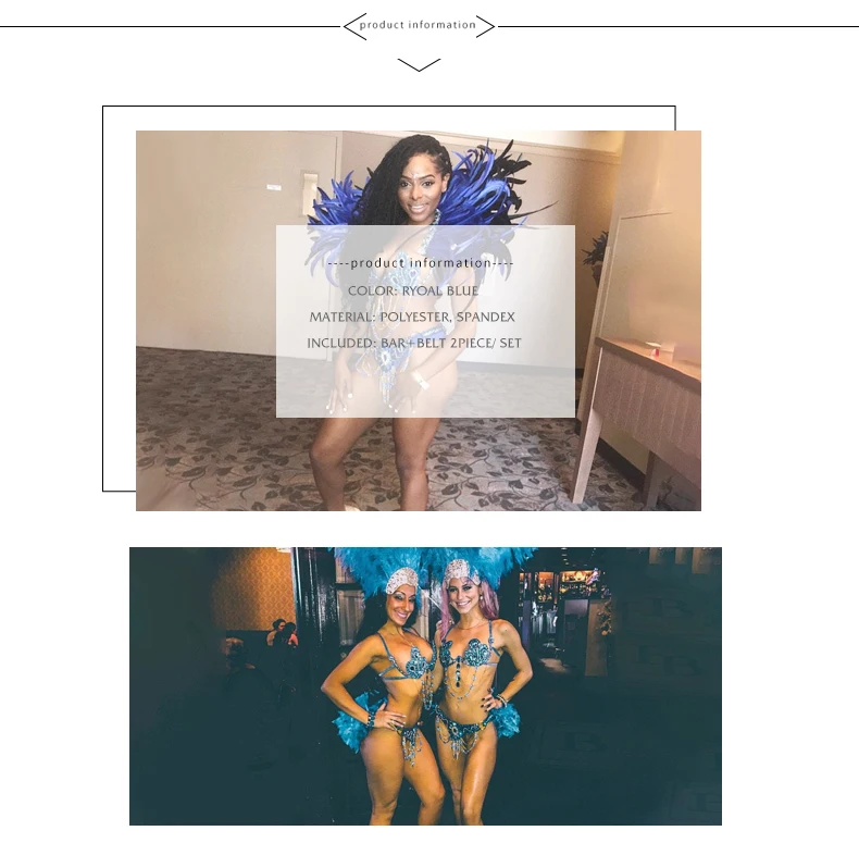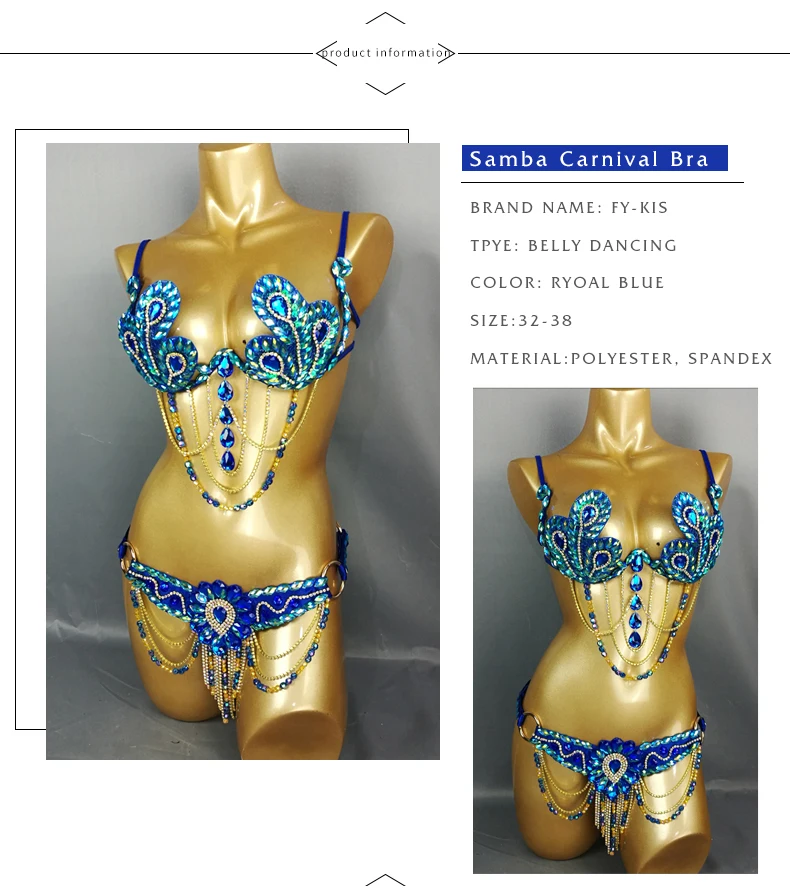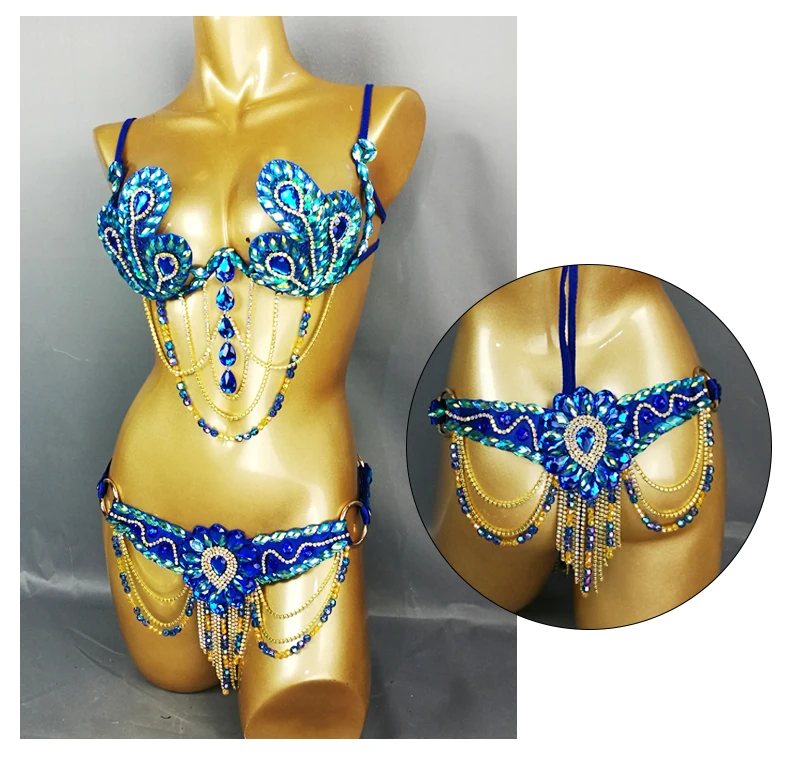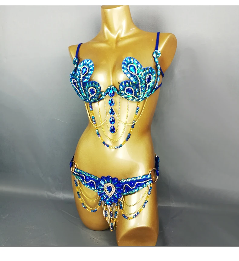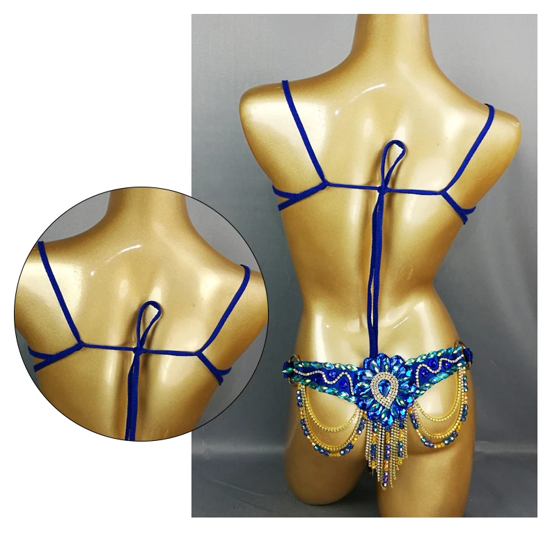 Карнавальный Бюстгальтер Samba, пояс с радужным камнем, C013-ROYAL, синий цвет
