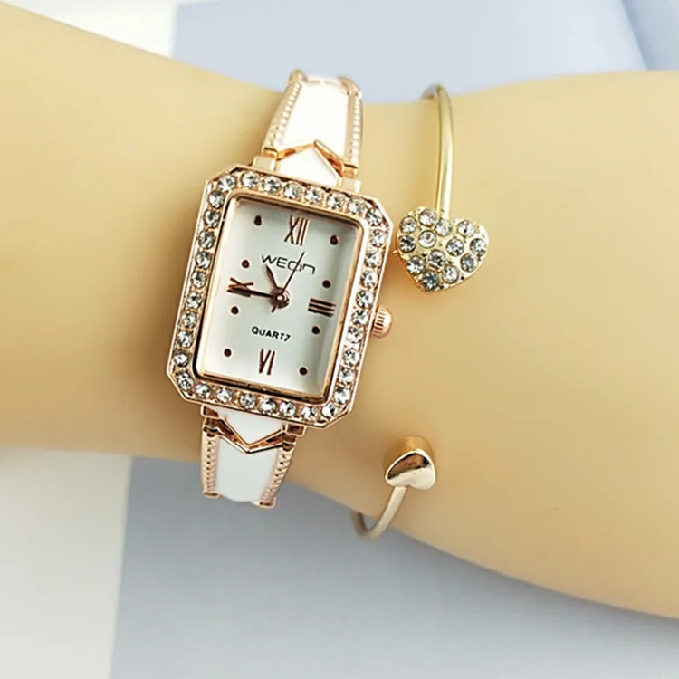 Лидер продаж 2018, стильные женские модные часы прямоугольной формы с браслетом и блестящими камнями, Элегантные наручные часы из розового золота