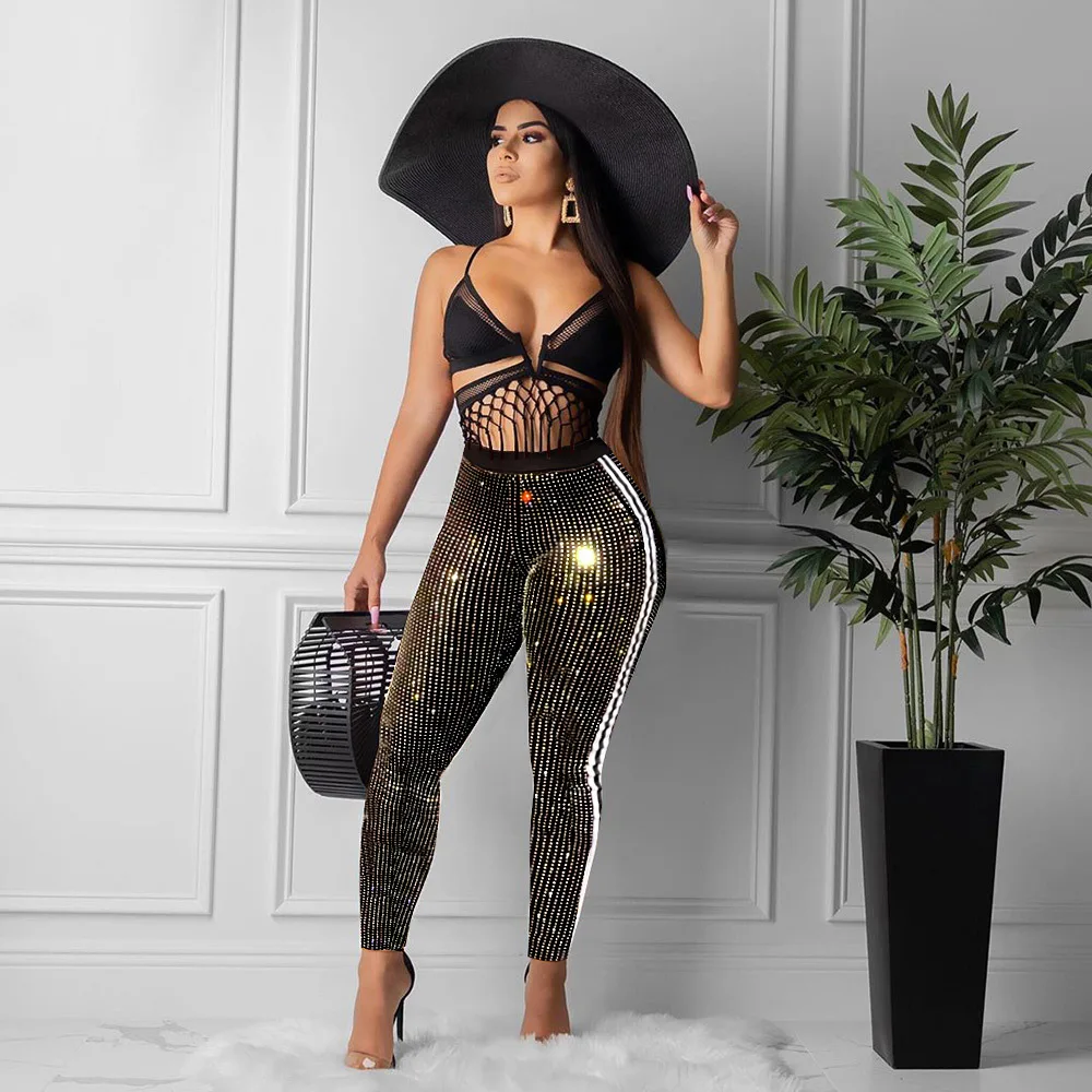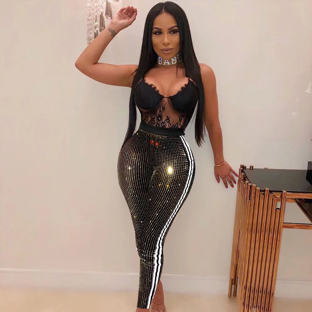 Женские узкие брюки с блестками, повседневные облегающие пляжные брюки в стиле бохо, модель A6075 в стиле хип-хоп на лето, 2021