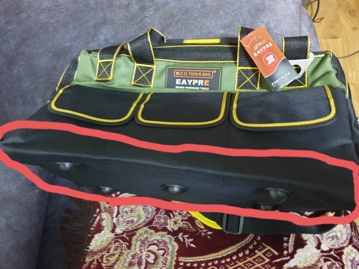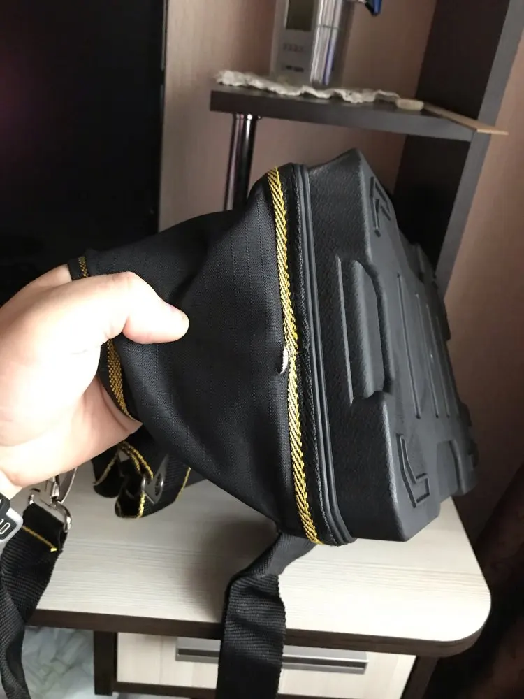 Сумка супер. Эту брал, чтобы убрать туда перфоратор и все его пречендалы: сверла, долото, переходники. Поместилась все отлично. Дно жесткое очень удобно. Всем советую сумка огонь. Сумку на 18 брал для сваррчника. Огонь. Сумки шикарные.