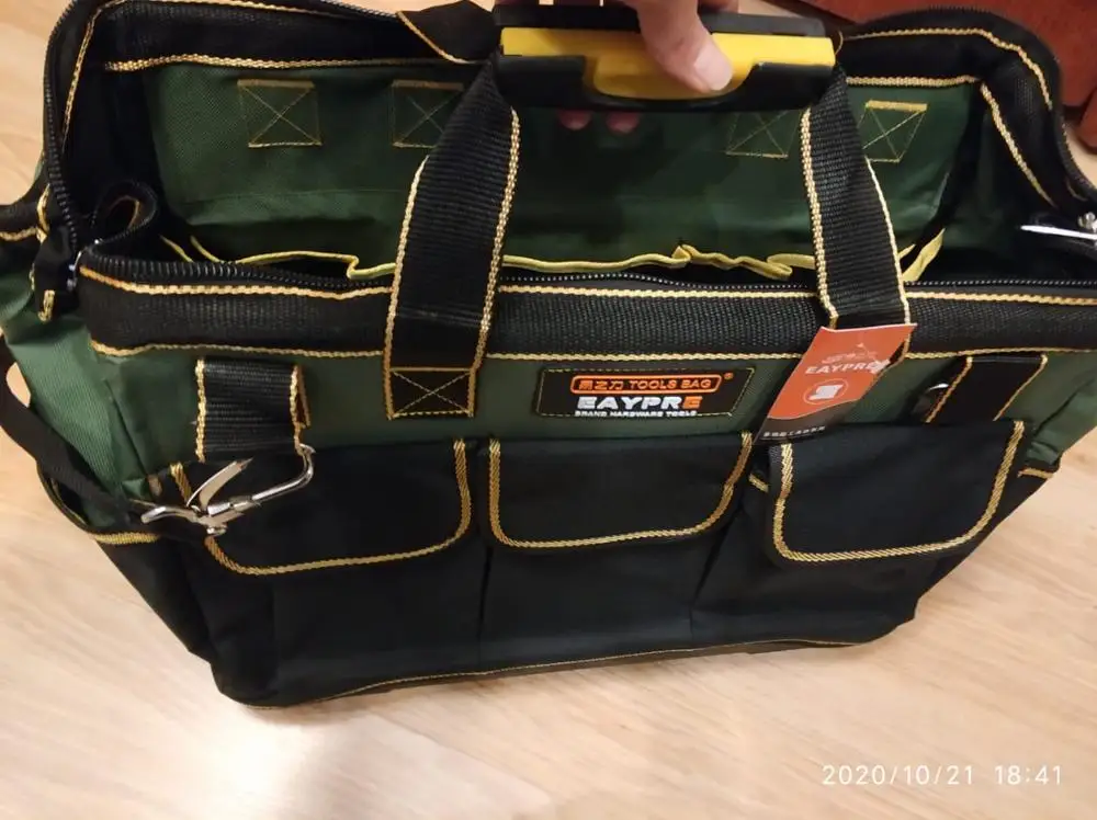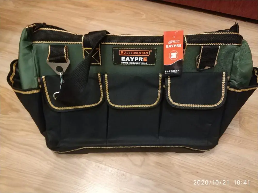 Сумка просто супер. висока якість. Але --- зручність для мого інструменту - слабо. Для електронщика не зовсім пасує. шкода що кармани внутрішні нікудишні. Все торчить. паяльник та дрібні інструменти просто не маю де вложити. Це скоріше сумка сантехніка. зауважу-- дуже швидка доставка. Продавцю оцінка 5 із 5. Рекомендую.