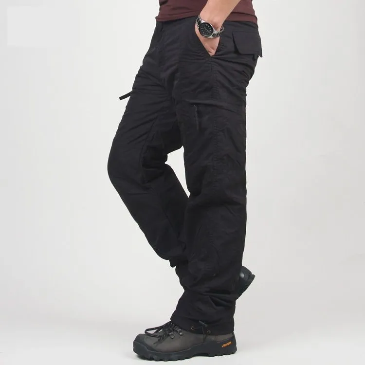 Мужские брюки-карго 2021, Зимние Повседневные теплые утепленные флисовые брюки, мужские хлопковые мешковатые военные тактические брюки с несколькими карманами