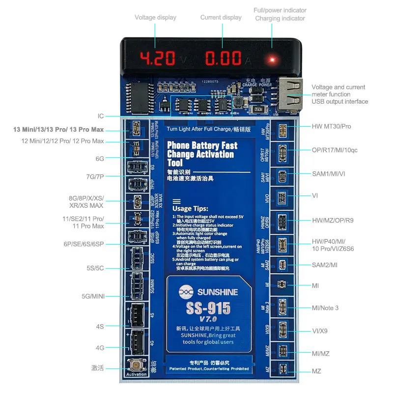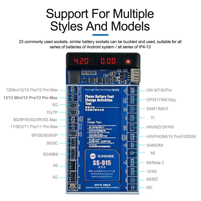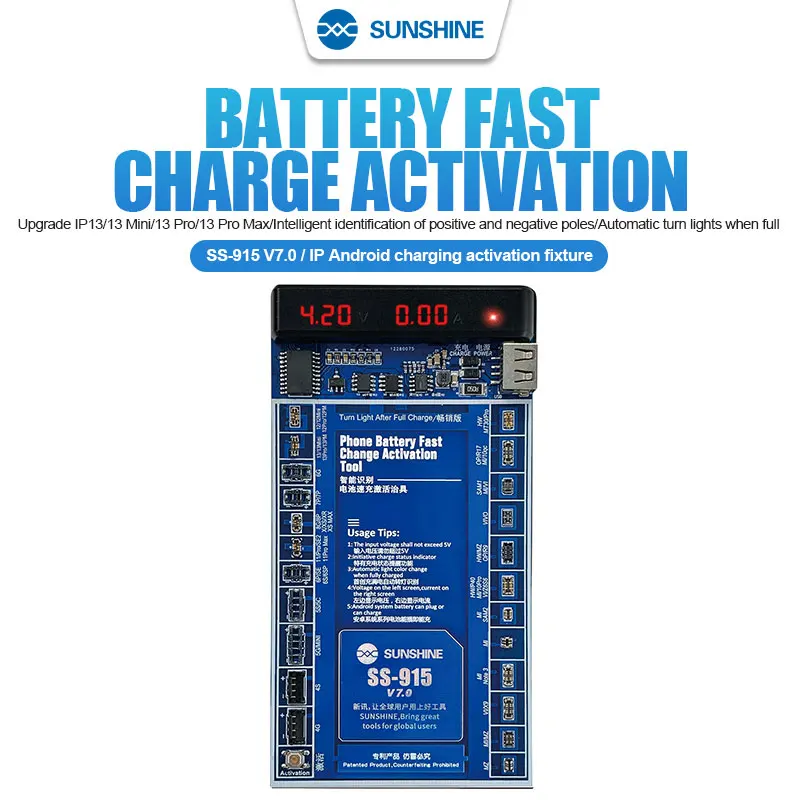 SS-915 универсальная плата для активации аккумулятора, инструмент для быстрой зарядки печатной платы с USB-кабелем для iPhone, Samsung, Android, HTC, HUAWEI, XIAOMI
