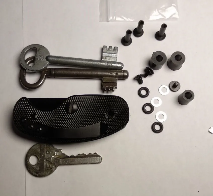 Доставка быстрая! До Московской области за 11 дней! Под мои ключи не совсем подошла, пришлось чуть переделать. Вставил свои мебельные стяжки, т.к. те что в комплекте маленькие, на все ключи не хватило. Просверлил новые отверстия и шире чем были. Между ключами вставлял тонкие шайбы, т.к. нестандартные 2 ключа. Если у вас обычные ключи как на картинках в описании, то все должно подойти.