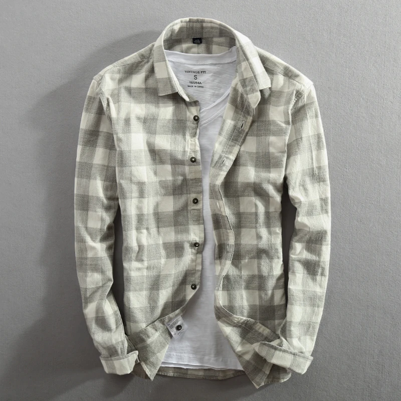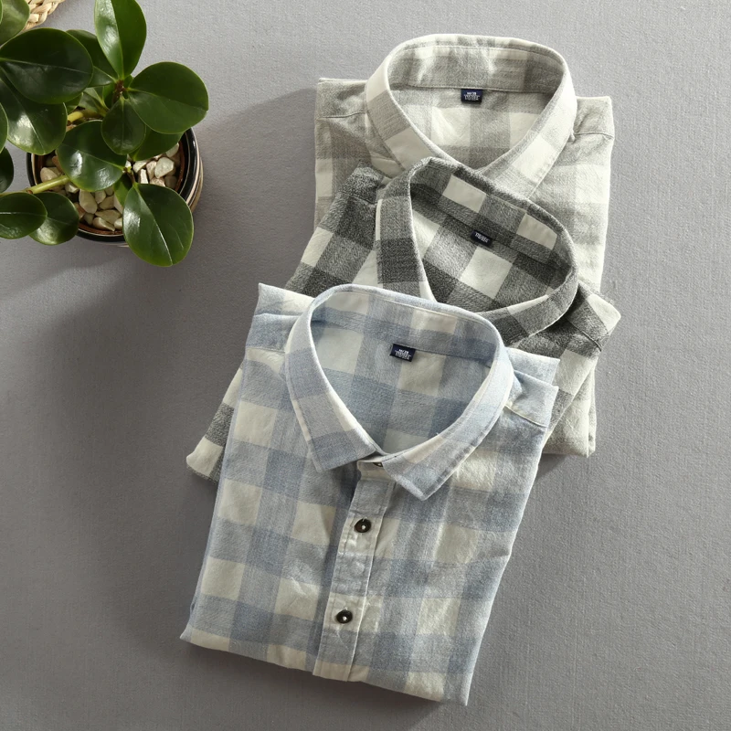 Мужская хлопковая рубашка в клетку, синяя Повседневная приталенная рубашка в винтажном китайском стиле с длинным рукавом, импортная одежда, весна-осень 2019