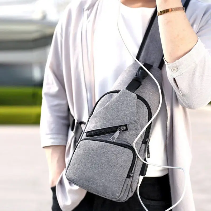 Мужской нагрудный рюкзак с USB-зарядным устройством и защитой от кражи, нагрудная Сумка-слинг на плечо