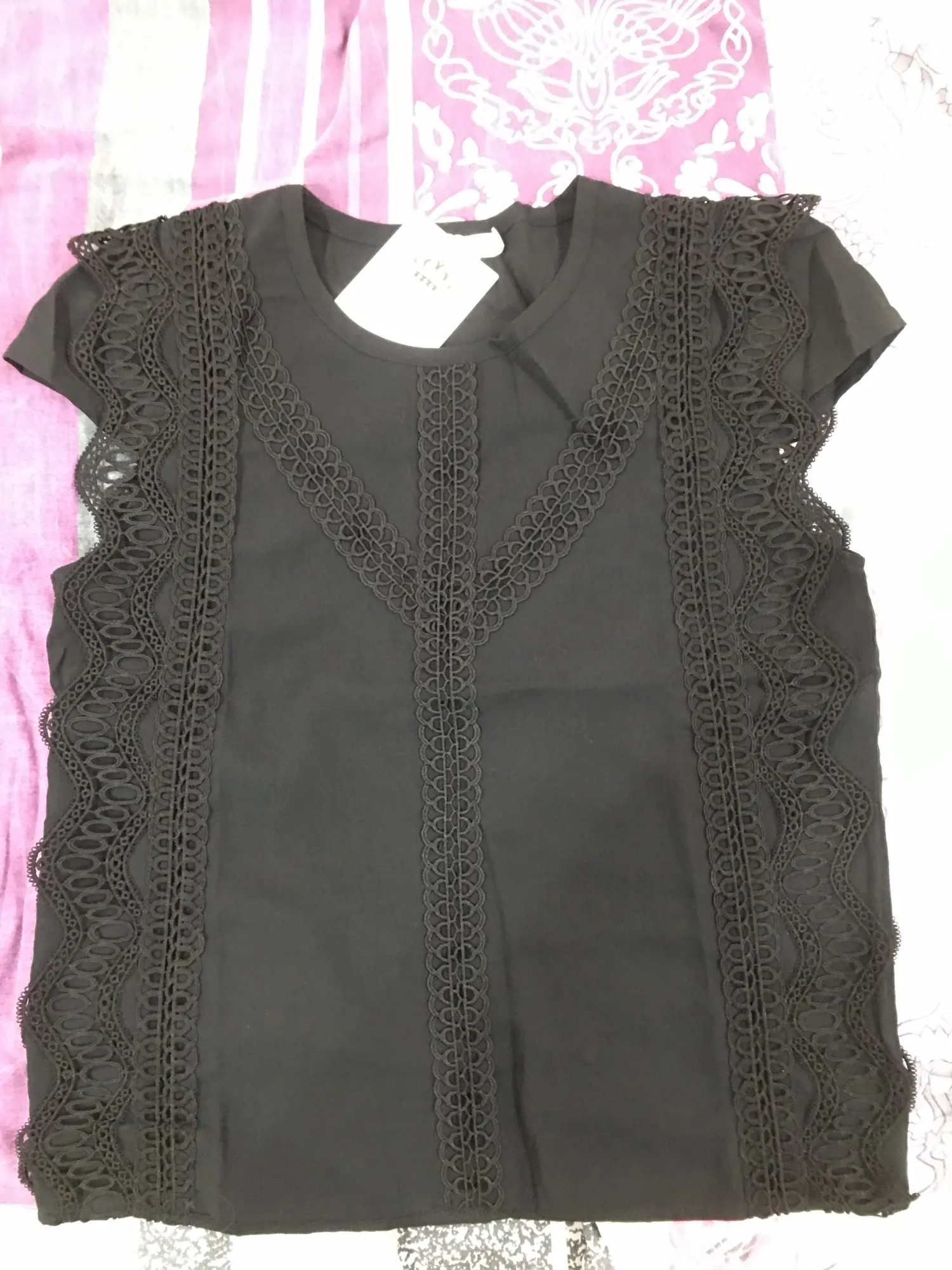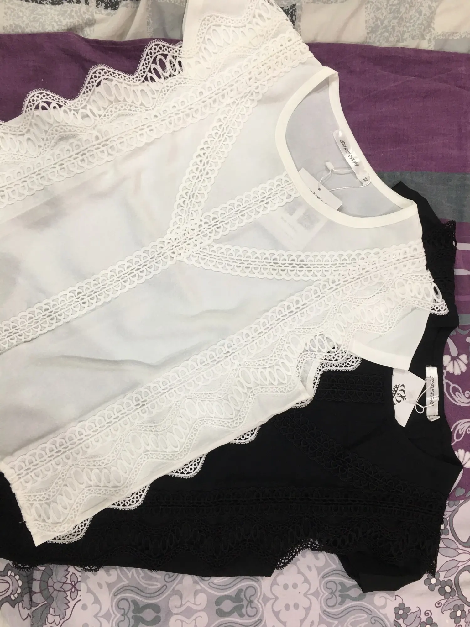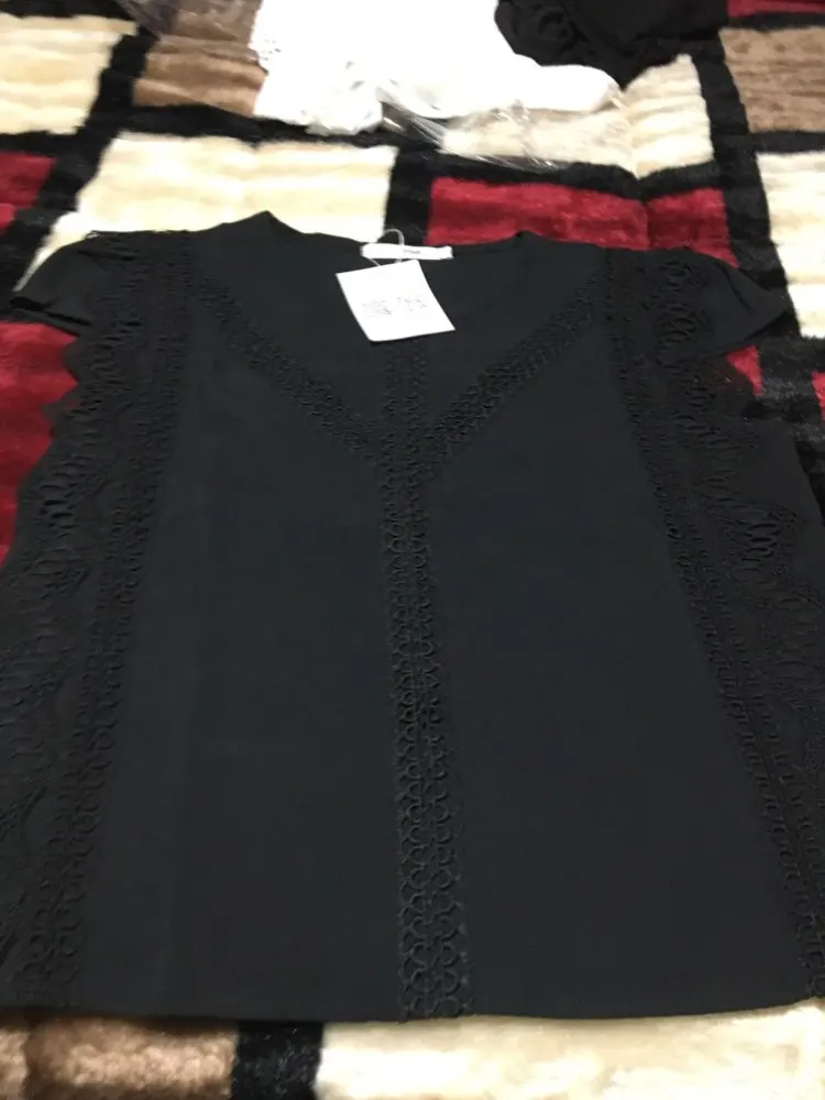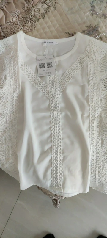 Снимаю одну звезду за пятно. Не знаю, отстирается или нет. Посылка пришла за месяц. На ог 84 и от 68 взяла L и прогадала с размером. Под руками нужно будет ушивать. Блузка не приталенная, идёт прямая, обращайте на это внимание. В общем, товар хороший.