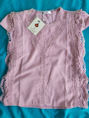 милая блуза, доставка две недели, на фото розовая, в реалии чуть темнее, мне даже этот цвет больше нравится