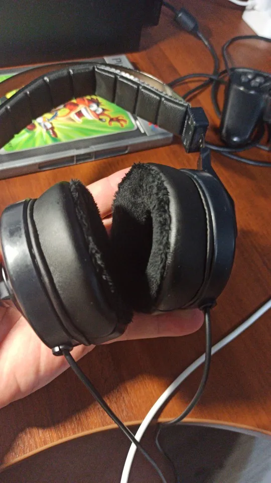 I have bought the other model from this seller that is also round but without velvet. It has been losing scraps from the leather, that I assume is faux (the product page says sheepskin), for many months already. So now I bought this one because it has less leather. My headphone is a Philips A5PRO. Still trying to find one that will last me more than a couple of years.