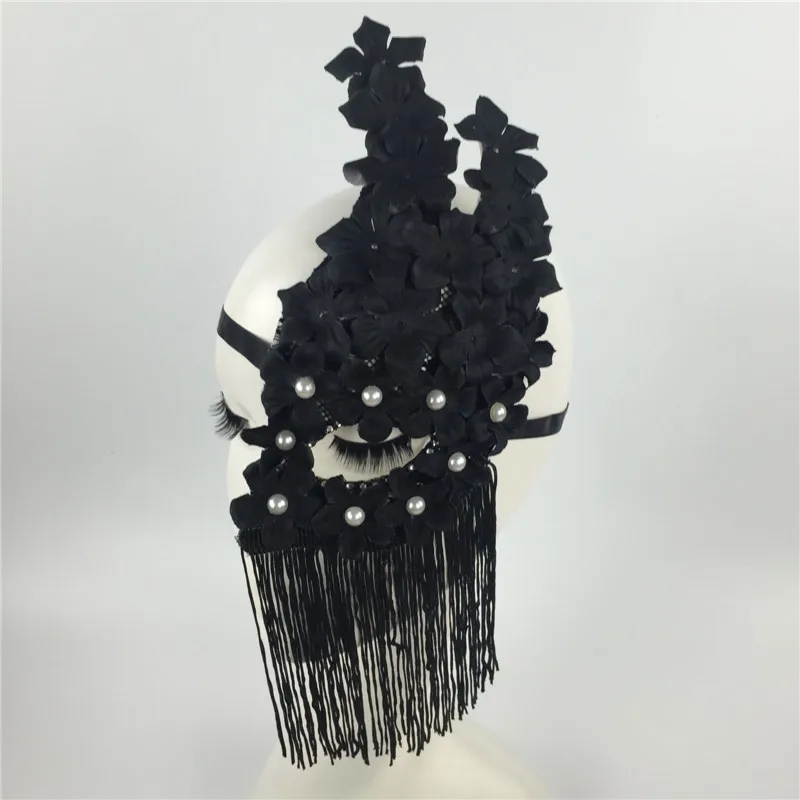 Женские маски для косплея, макияжные маски для вечеринок, ночных клубов, шоу, баров, полумаски, головные уборы с кисточками для Хэллоуина, B-9509