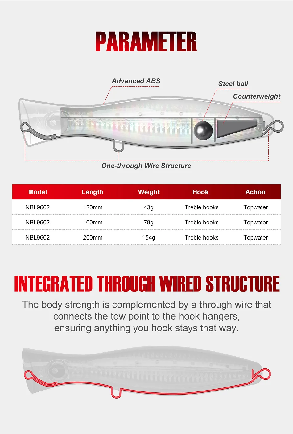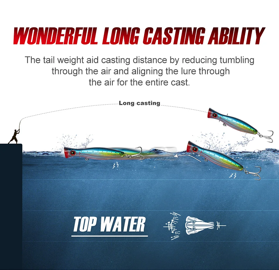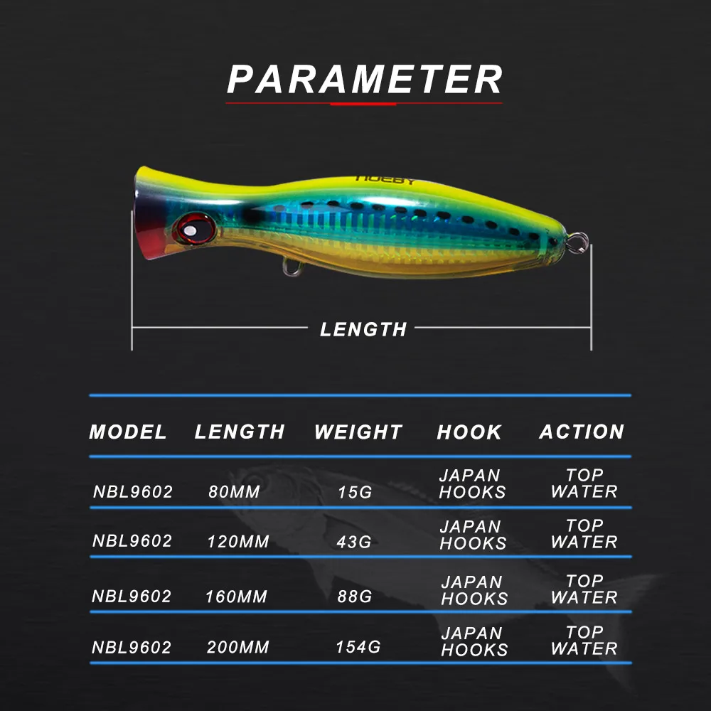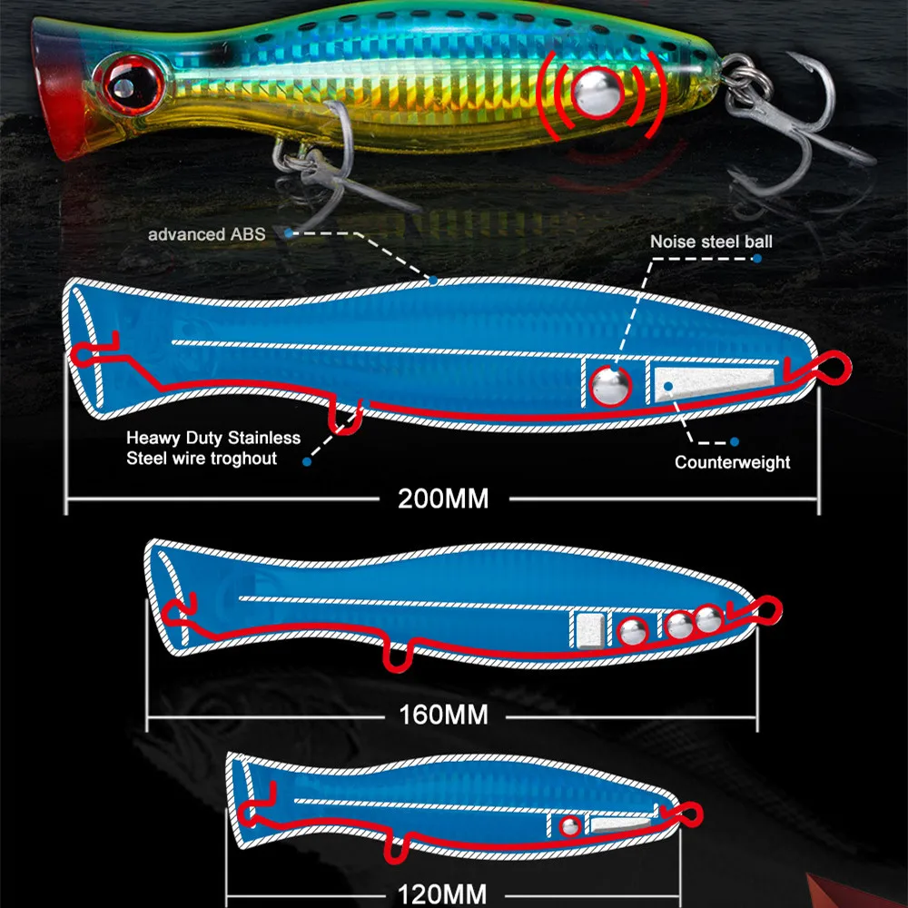 NOEBY Popper Рыбная приманка, 200/160/120 мм 150/83/43g Topwater, наживка Isca искусственный пункт Pesca Рыболовная наживка, Морская рыбалка, встроенный в транспортное средство