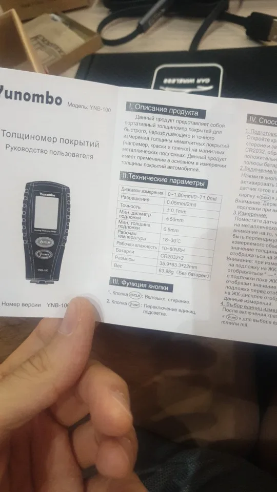 Отличный толщиномер за свои деньги. В комплекте чехол и инструкция на русском