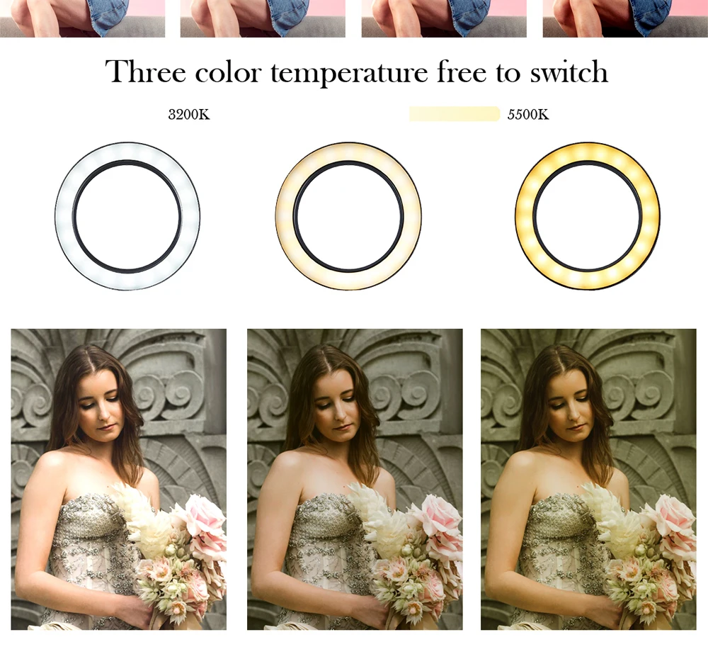 Диммируемый светодиодный кольцевой светильник для камеры, студийной фотографии, видео, макияжа, кольцевой светильник для Youtube, Tik Tok, селфи-телефона со штативом
