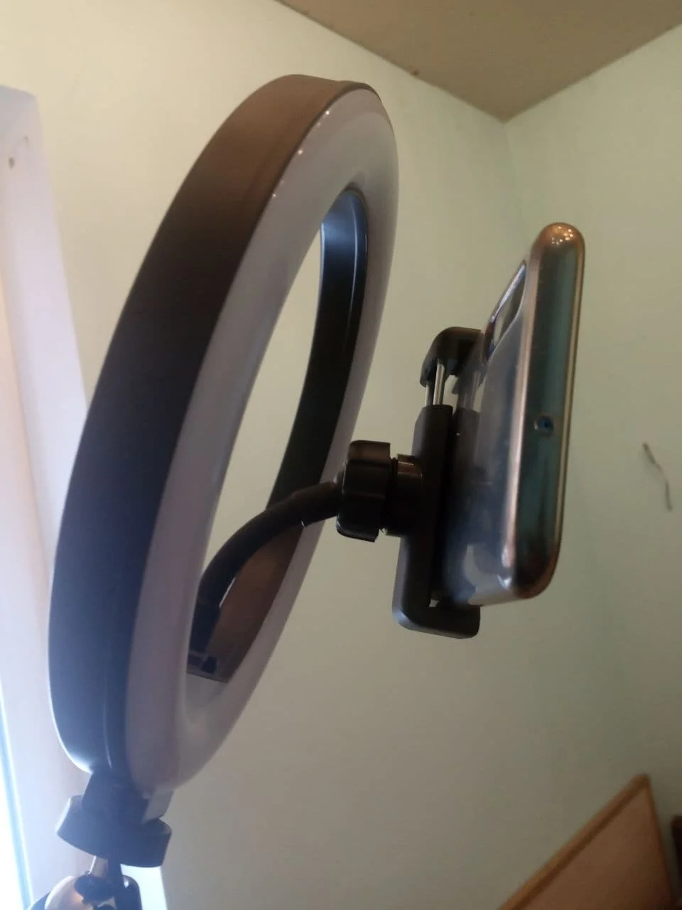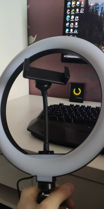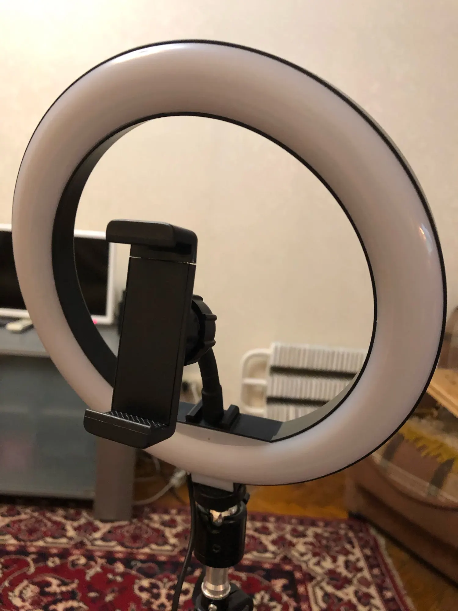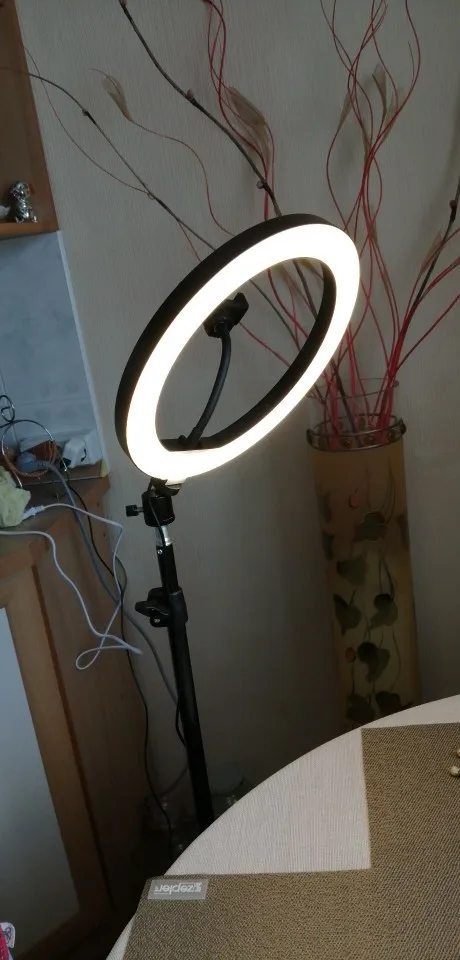 сама лампа ни о чем, освещение либо слабое, либо слишком яркое, с нормальной кольцевой лампой не сравниться. телефон не крепится, потому что в самой лампе нет крепления для держателя. ну такое. бесполезная игрушка для школьника, не знаю, на что я понадеялась. а и противно пищит от usb, ноут игровой перегревается ад. почему не сделать нормальные порты. не берите, лучше поднакопите и купите нормальную лампу