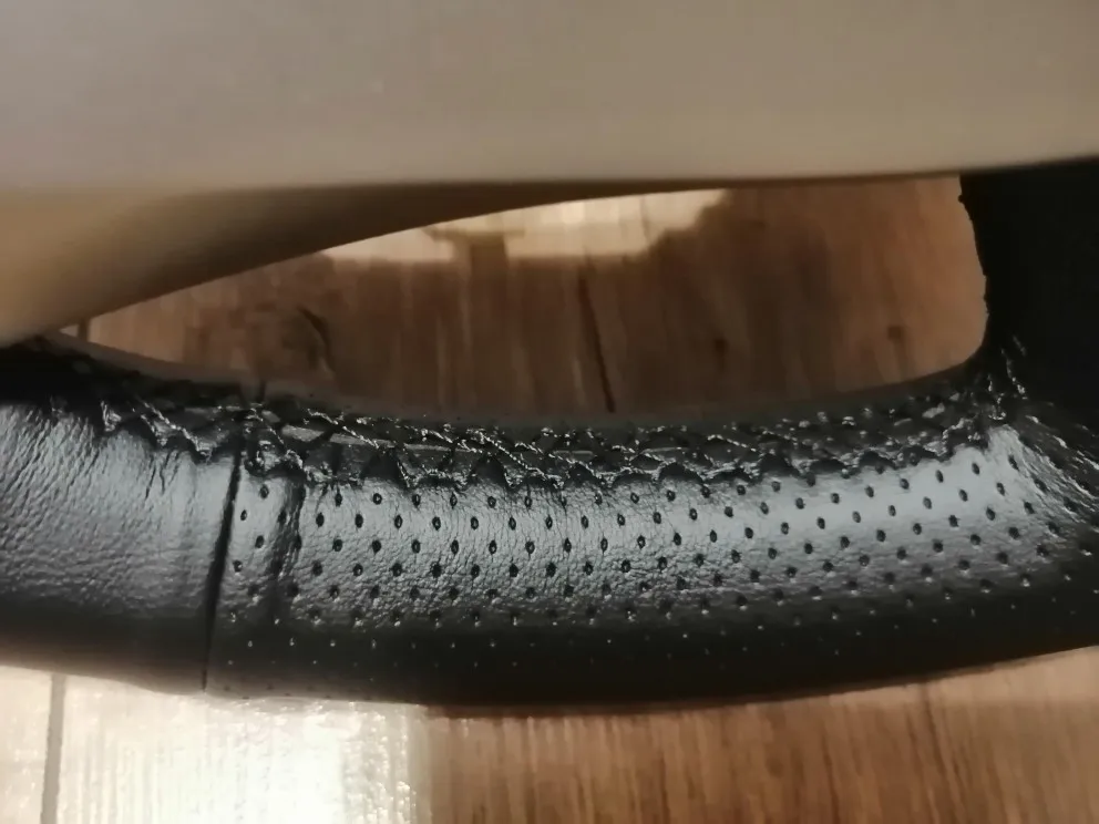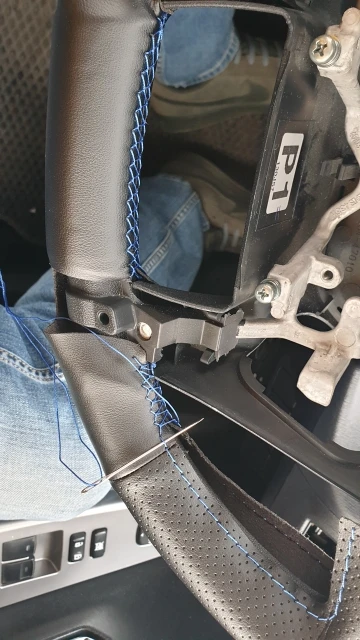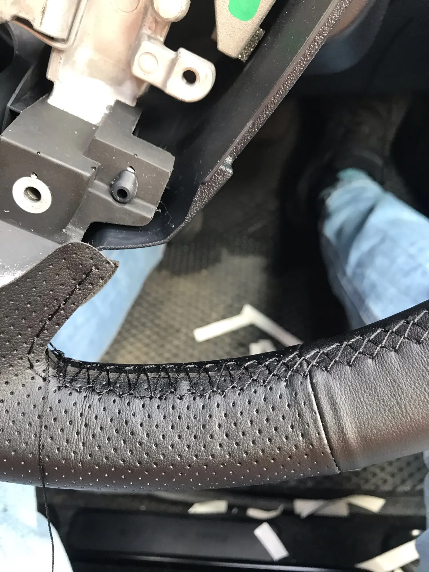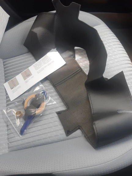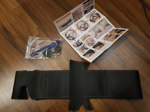 Не смог демонтировать рулевое колесо - не было инструмента. А так на шитье прям в машине ушло 4 часа. Чехол сел идеально на уже кожаный руль, правда по бокам небольшие завоздушенки, может быть разойдутся. Лента не пригодилась. К покупке рекомендую.
